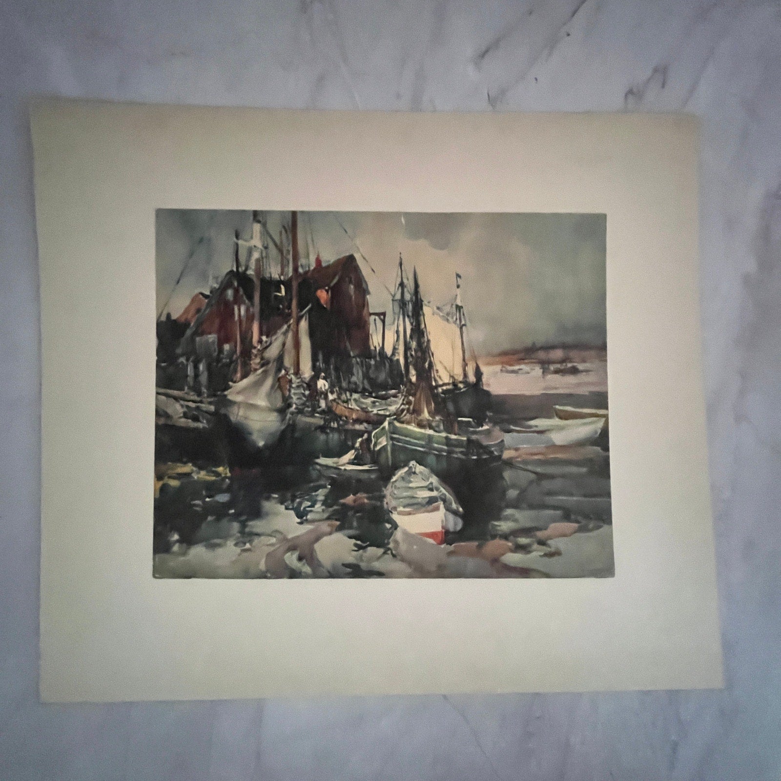 In Gloucester Harbor Watercolor MA John Cuthbert Hare 12x14" Art Print FL1