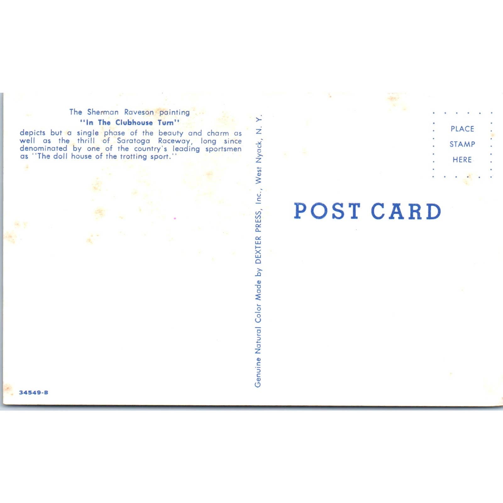 In the Clubhouse Turn Sherman Raveson Horse Racing Saratoga Postcard TK1-23