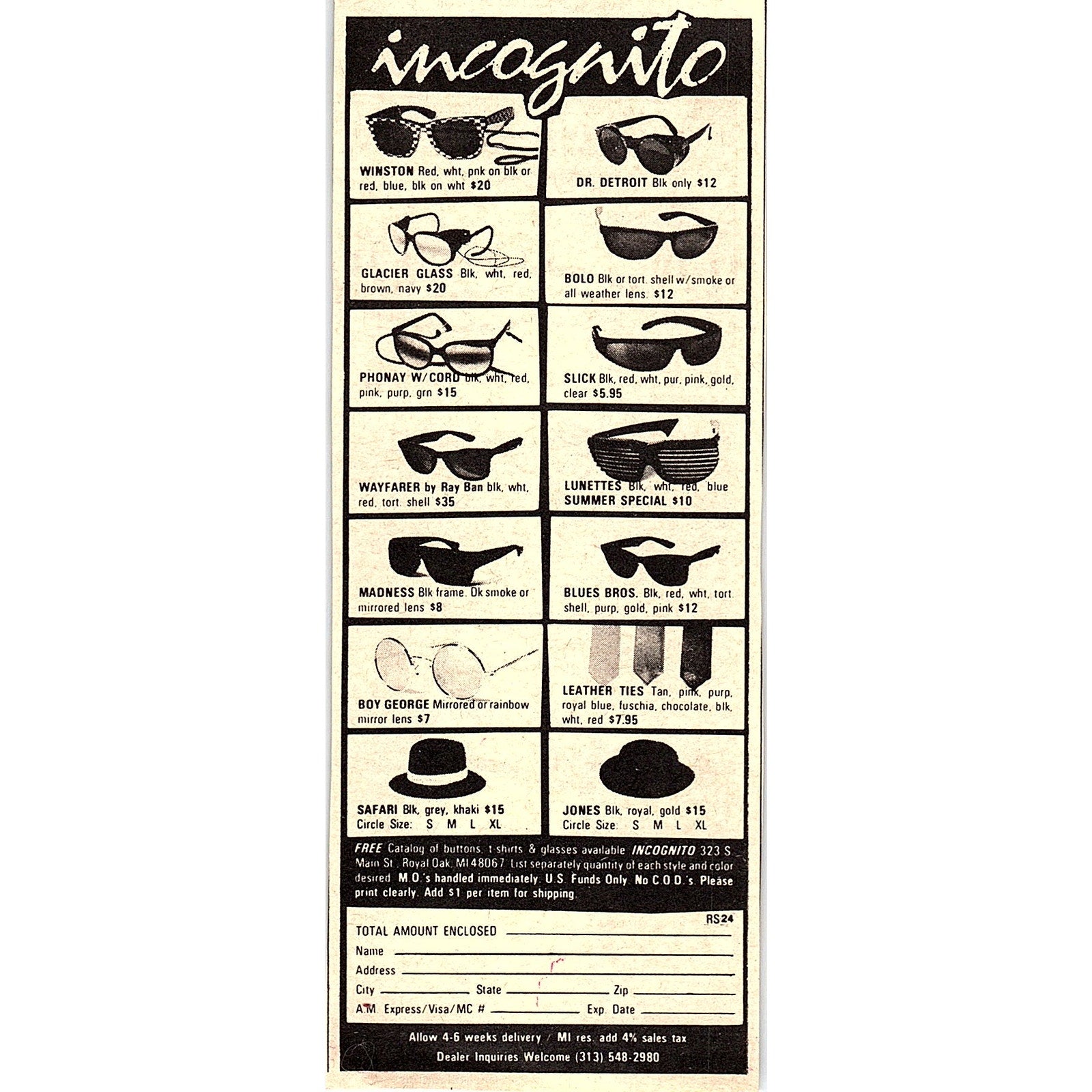 Incognito Sunglasses Royal Oak Michigan 1984 Ad AF8-H1