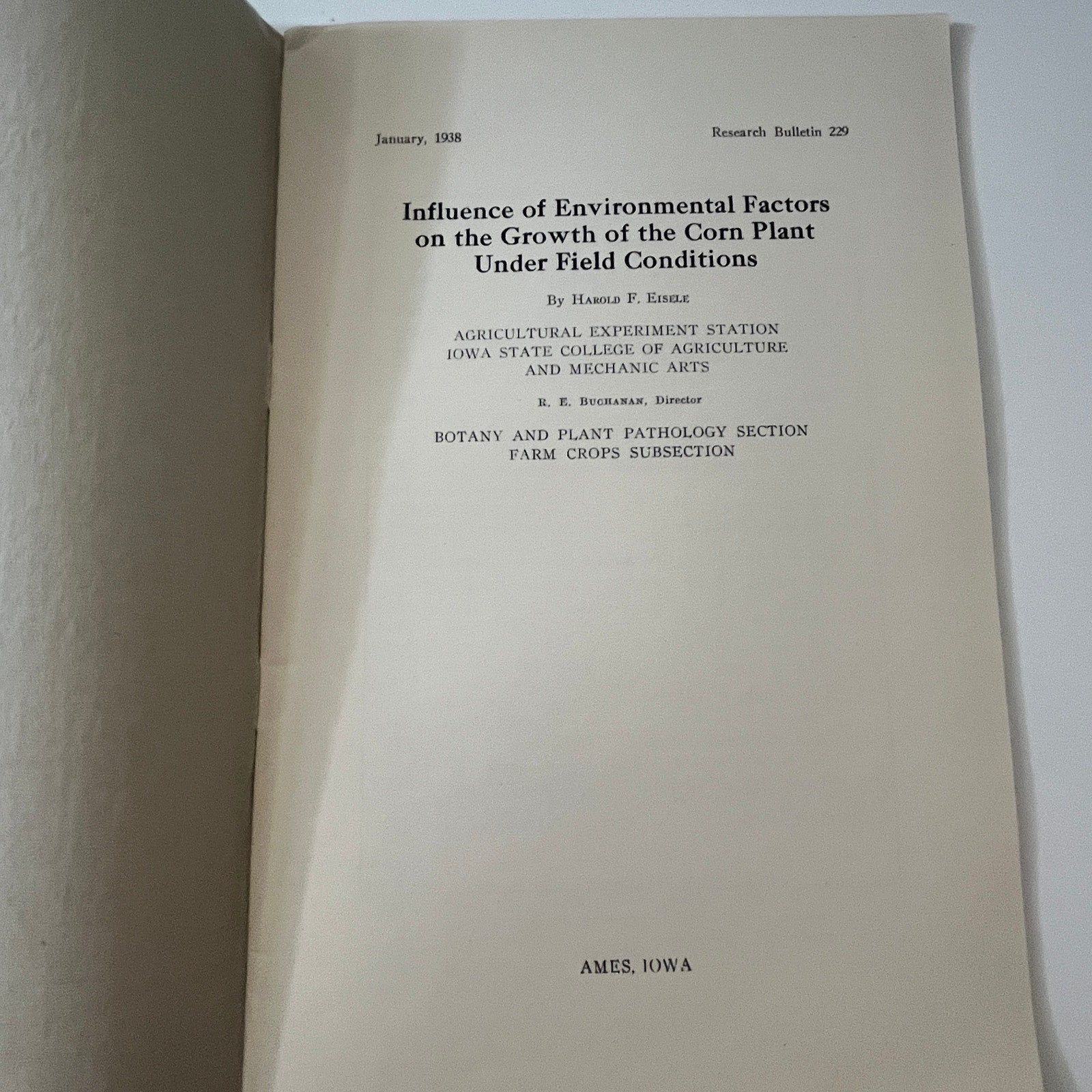 Influence of Environmental Factors on the Growth of the Corn Plant Under Field Conditions 1938 Ames Iowa Agriculture Bulletin Booklet TK2-XB2