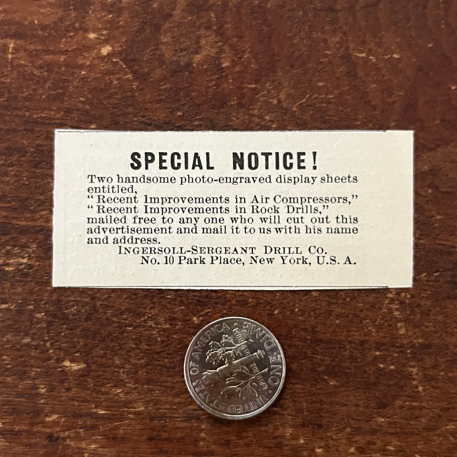 This is an original ad taken from Scientific American October 29th 1892. This is a small ad, not more than an inch or two in either direction - please see the picture next to a coin for exact scale. See pics for condition.