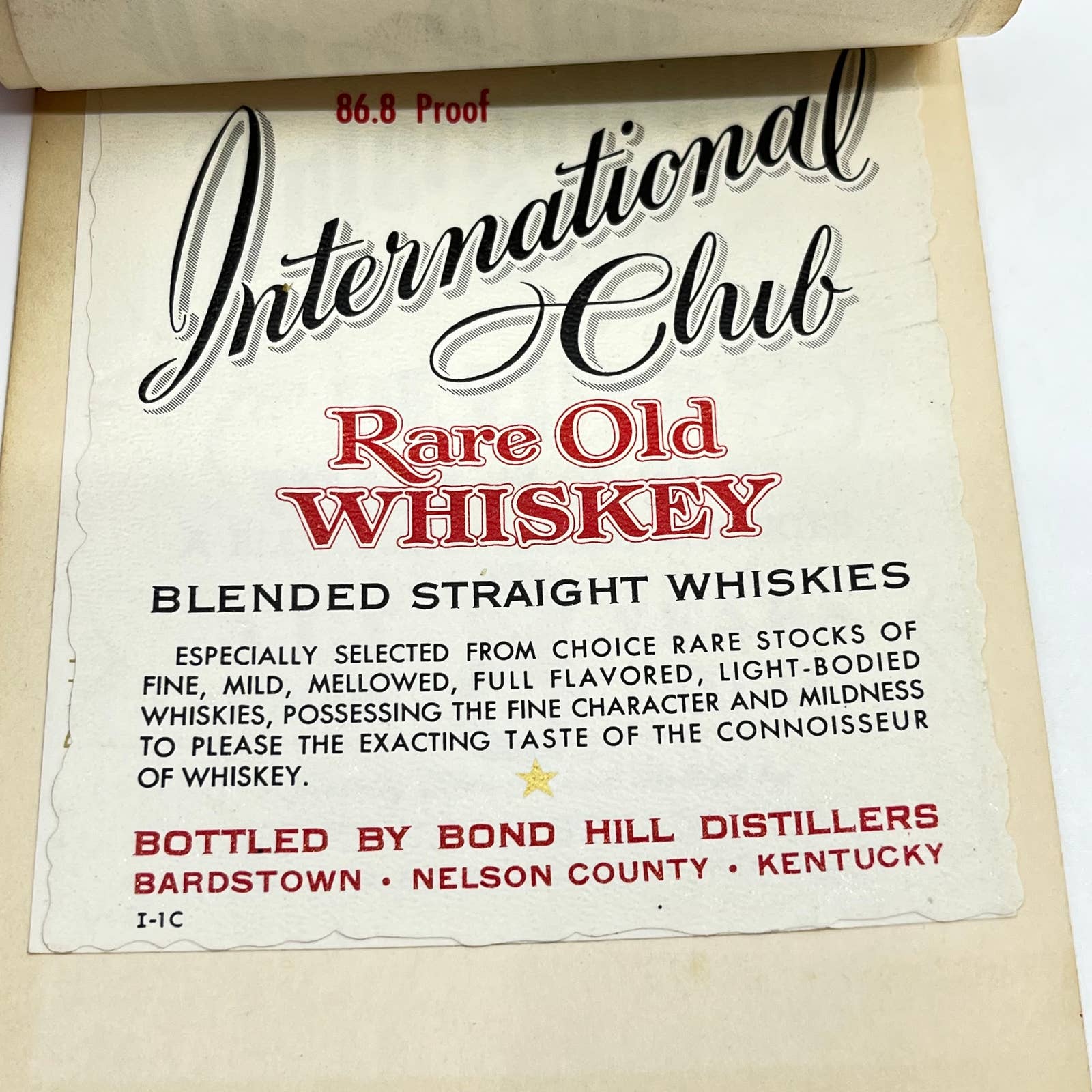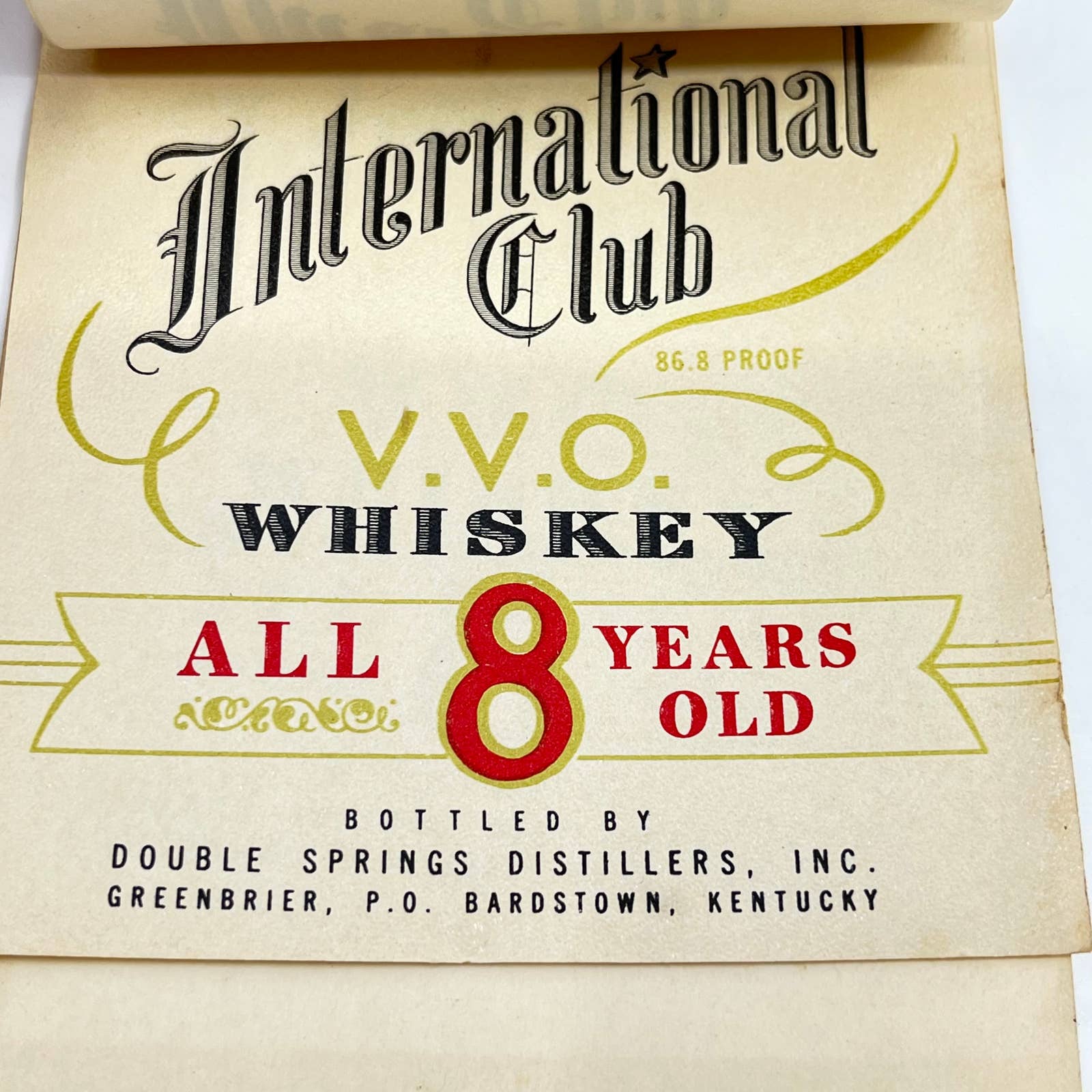 International Club VVO Whiskey Label Set of 7 Double Springs Greenbrier KY