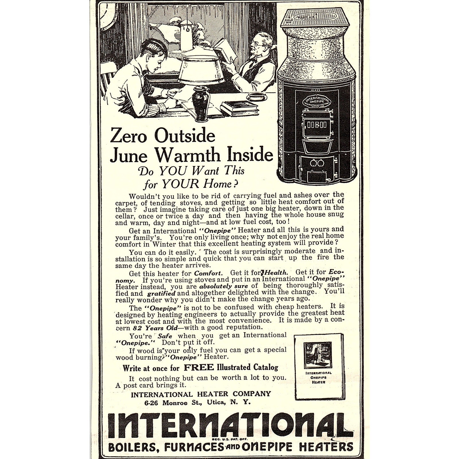 International Heater Co Boilers Furnaces Onepipe Heaters Utica NY 1924 Ad AG3-4