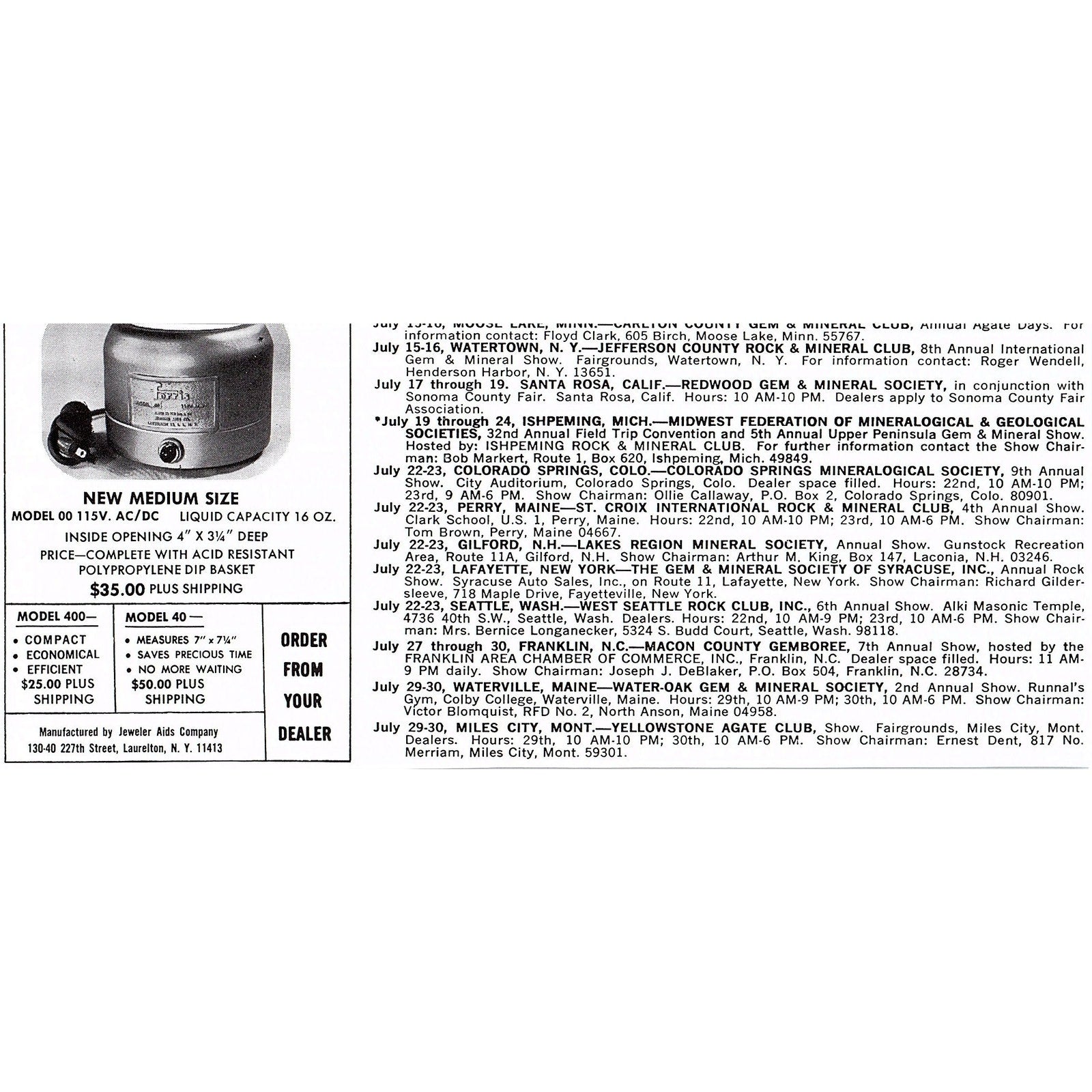 Measures approx 2.5x7.5". This is a SMALL Ad, size is approximate. Original piece taken from a 1972 Lapidary Journal magazine. Has regular wear and tear you would expect from a piece this age. See pics for condition.