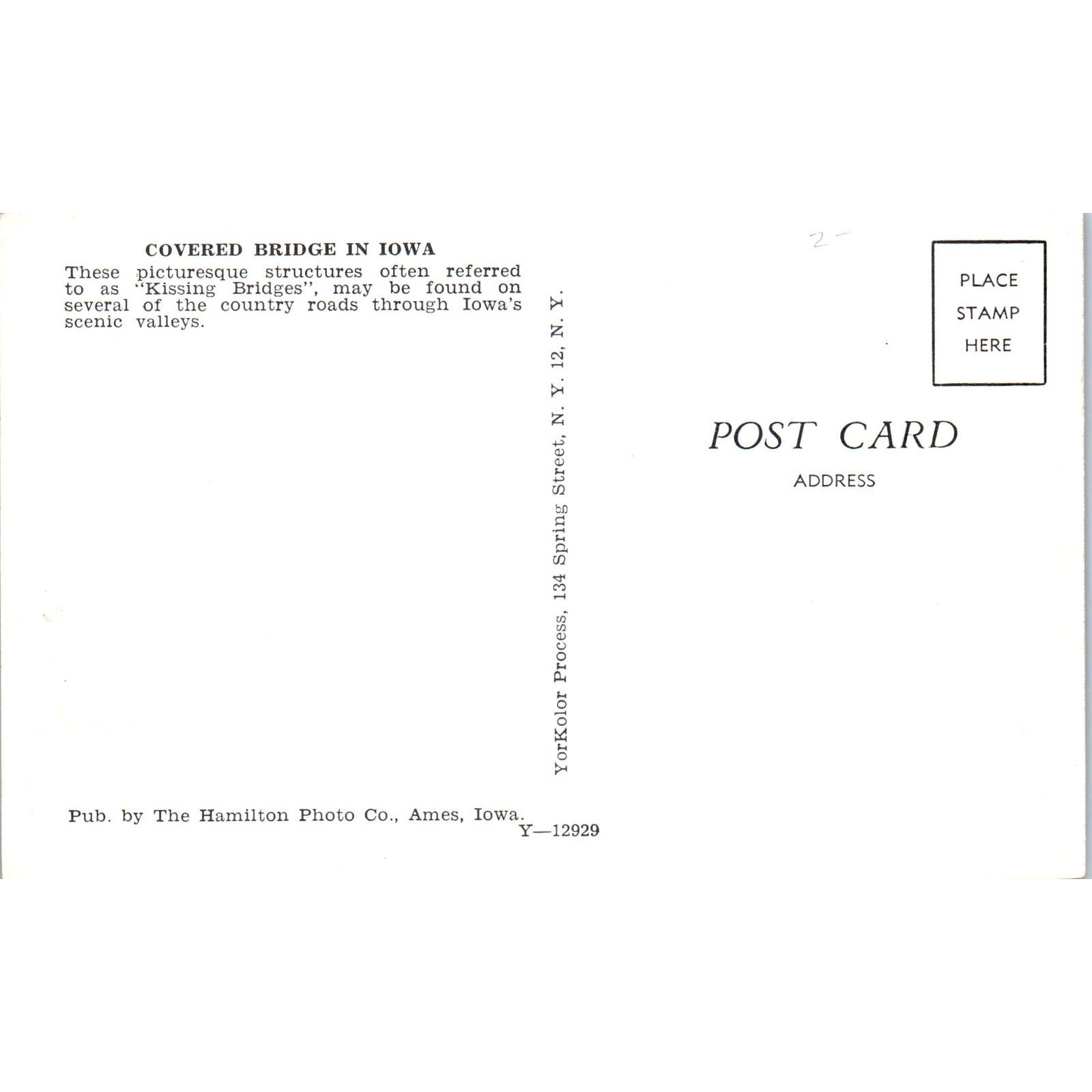 Iowa Valley Country Road Kissing Bridge Covered Bridge Postcard PC7