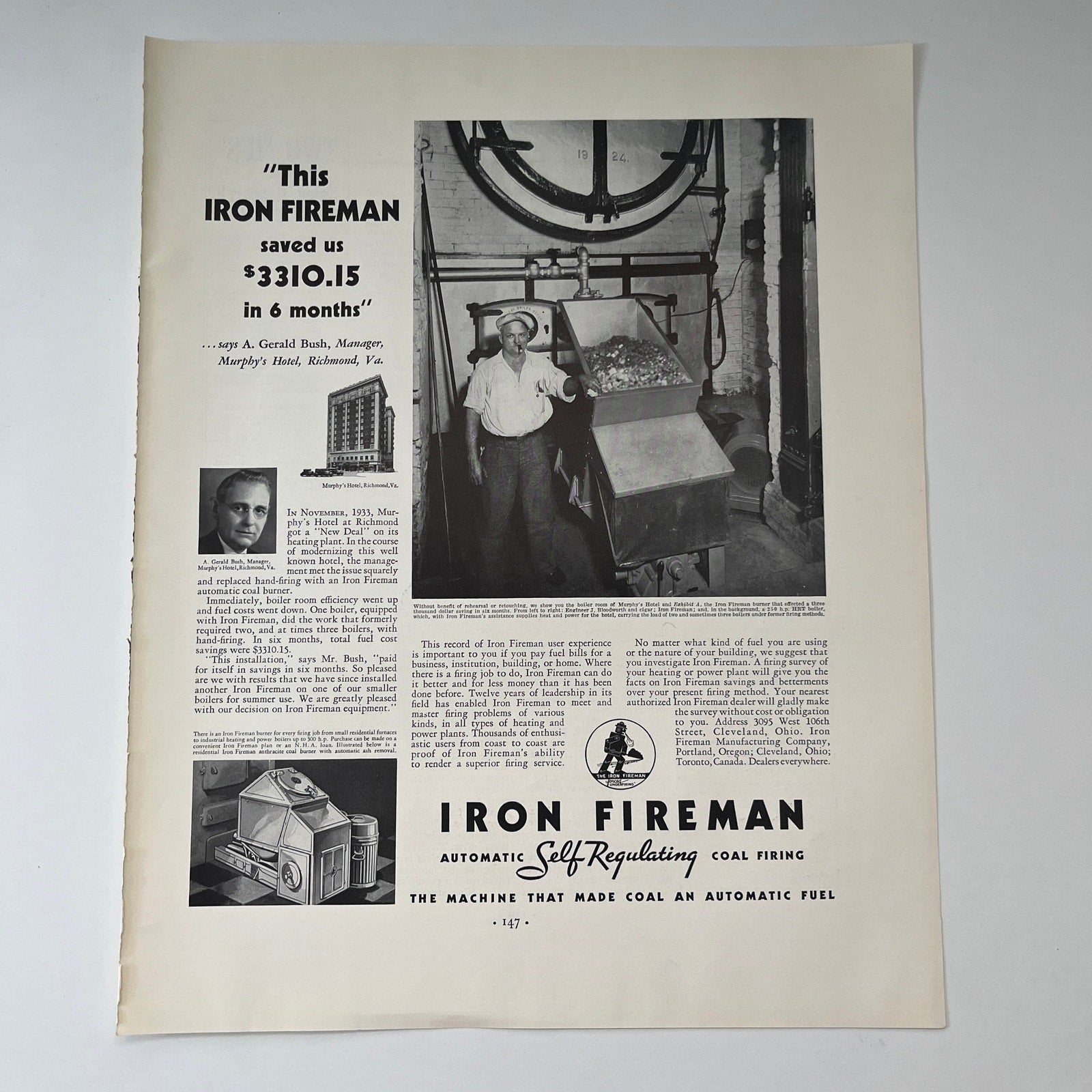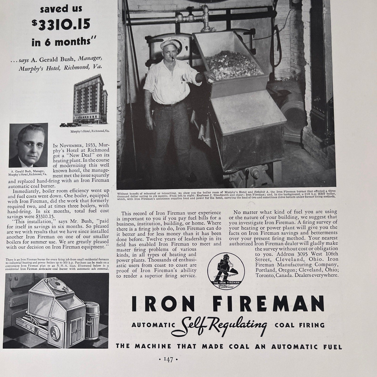 Iron Fireman Mfg Co Self Regulating Coal Firing Cleveland OH 1935 Ad V1-4