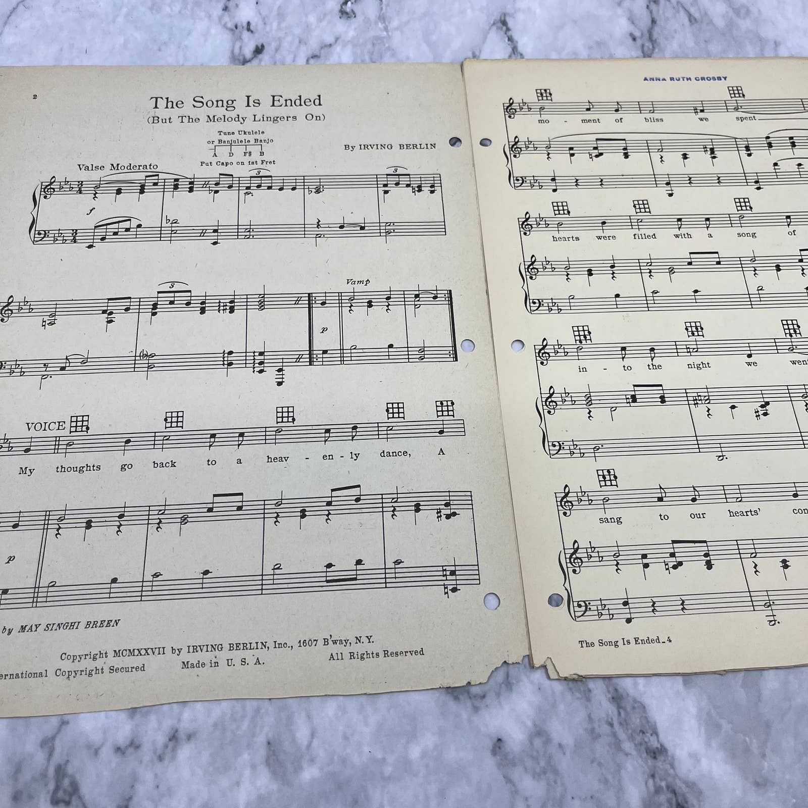 Irving Berlin 1927 The Song is Ended But The Melody Lingers On Sheet Music TJ4