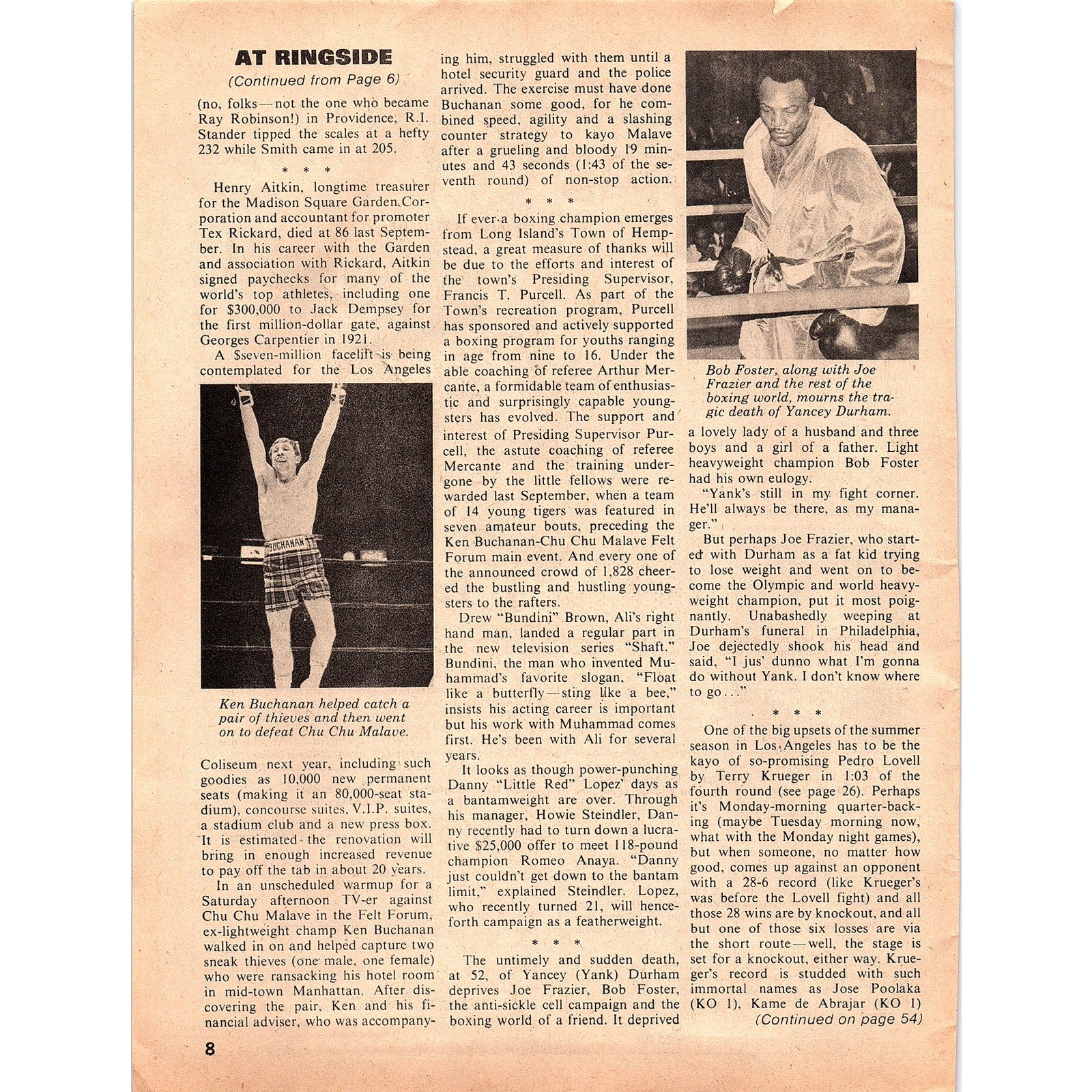 Measures approximately 8x11". Original piece pulled from 1974 World Boxing Magazine. See pics for condition.