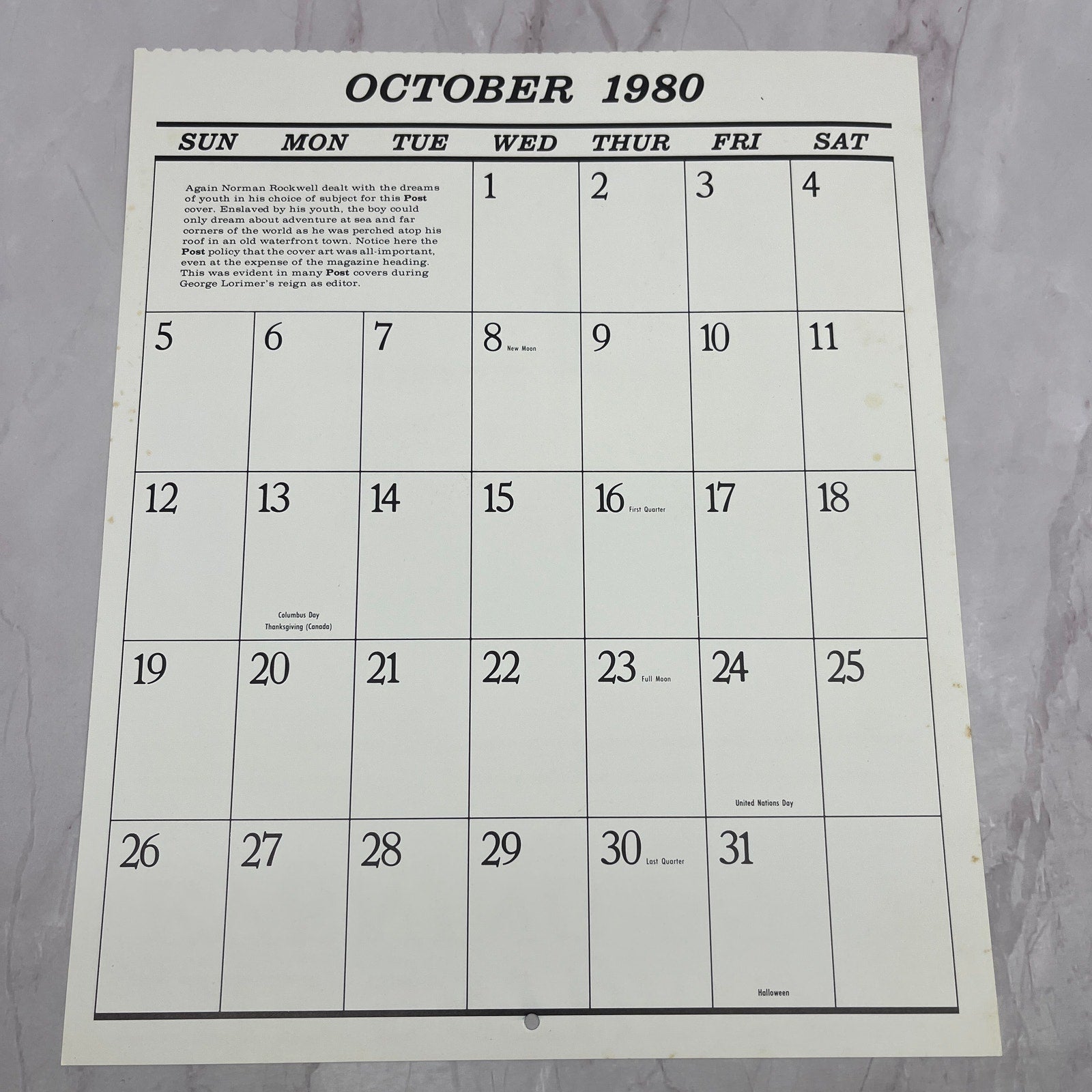 Cover repro pulled from calendar, measurements are approximate. See pics for condition.