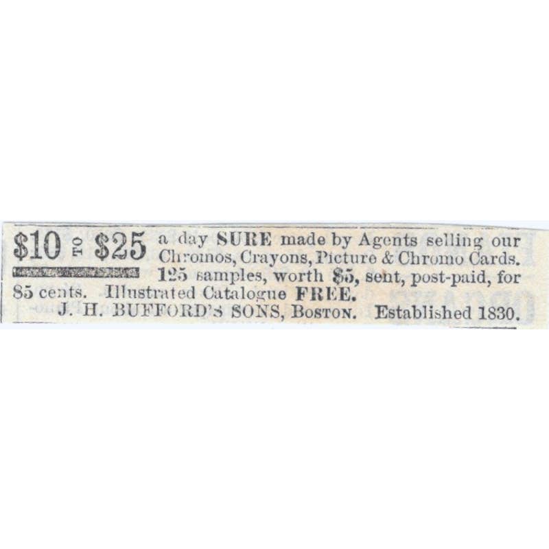 This is a small ad, roughly no bigger than 1/4 x 3". Pulled from a 1878 Issue of Peterson's Magazine. See pics for condition. Measurements are approximate.
