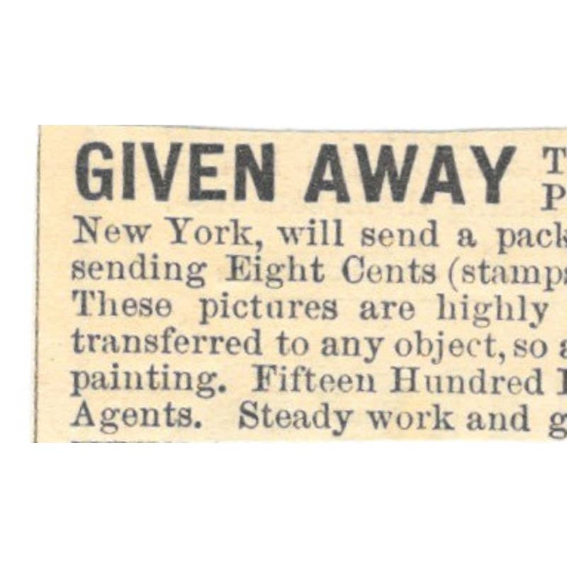 This is a small ad, roughly no bigger than 1/4 x 3". Pulled from a 1878 Issue of Peterson's Magazine. See pics for condition. Measurements are approximate.