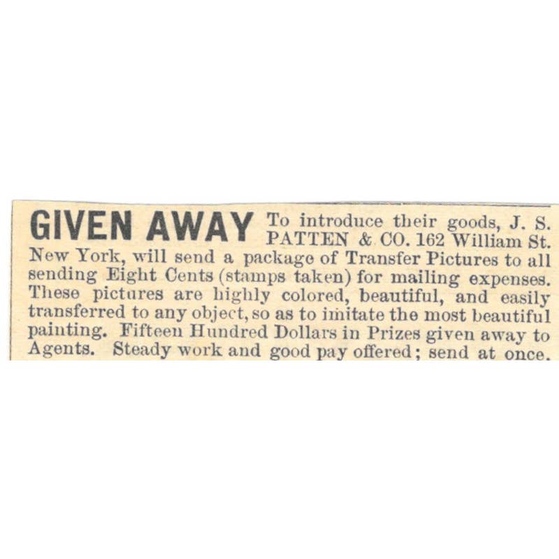 J.S. Patten & Co Transfer Pictures - Ad 1878 Original TJ7-L2-2