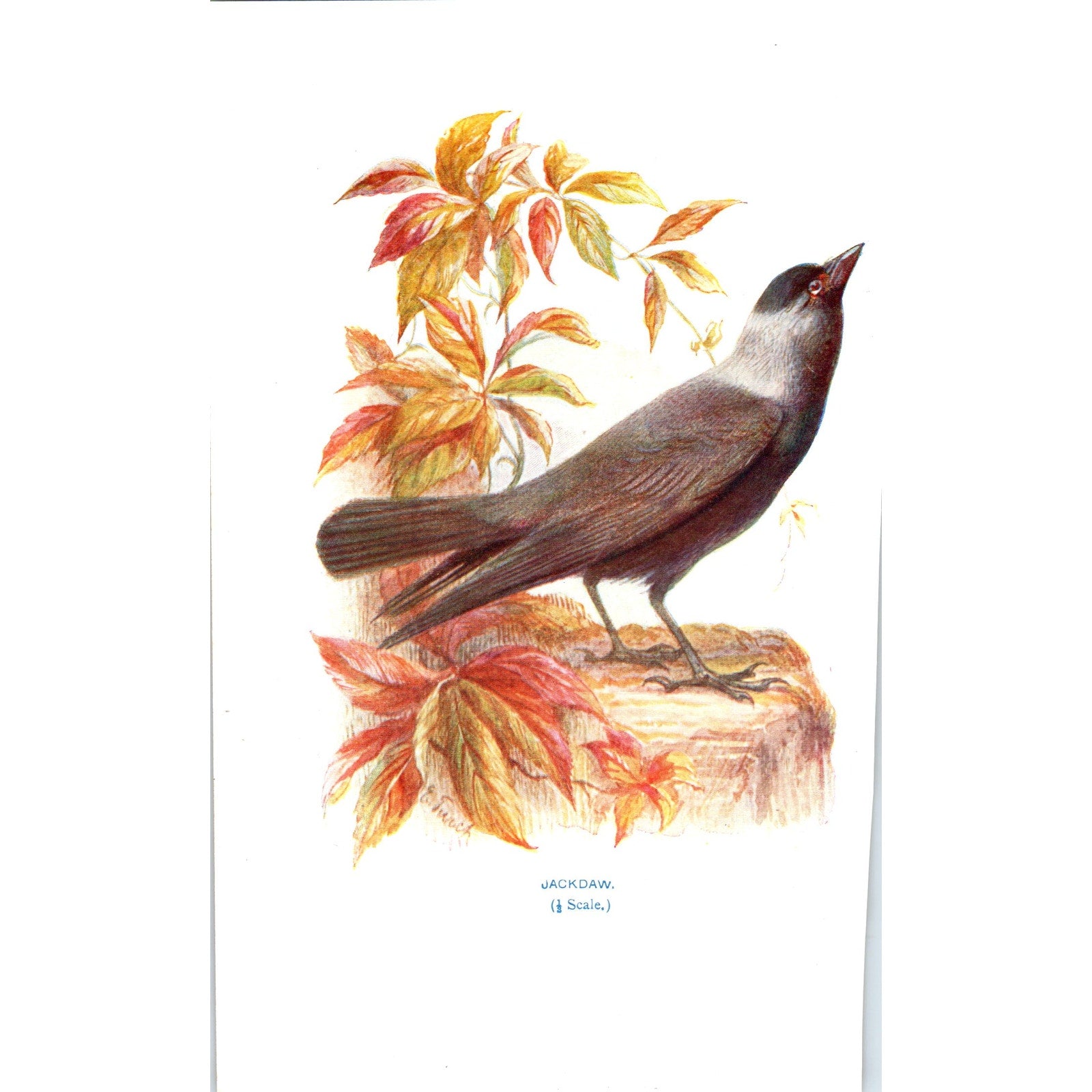 Jackdaw Bird 1903 Original Color Engraving Plate Print AD8-B3