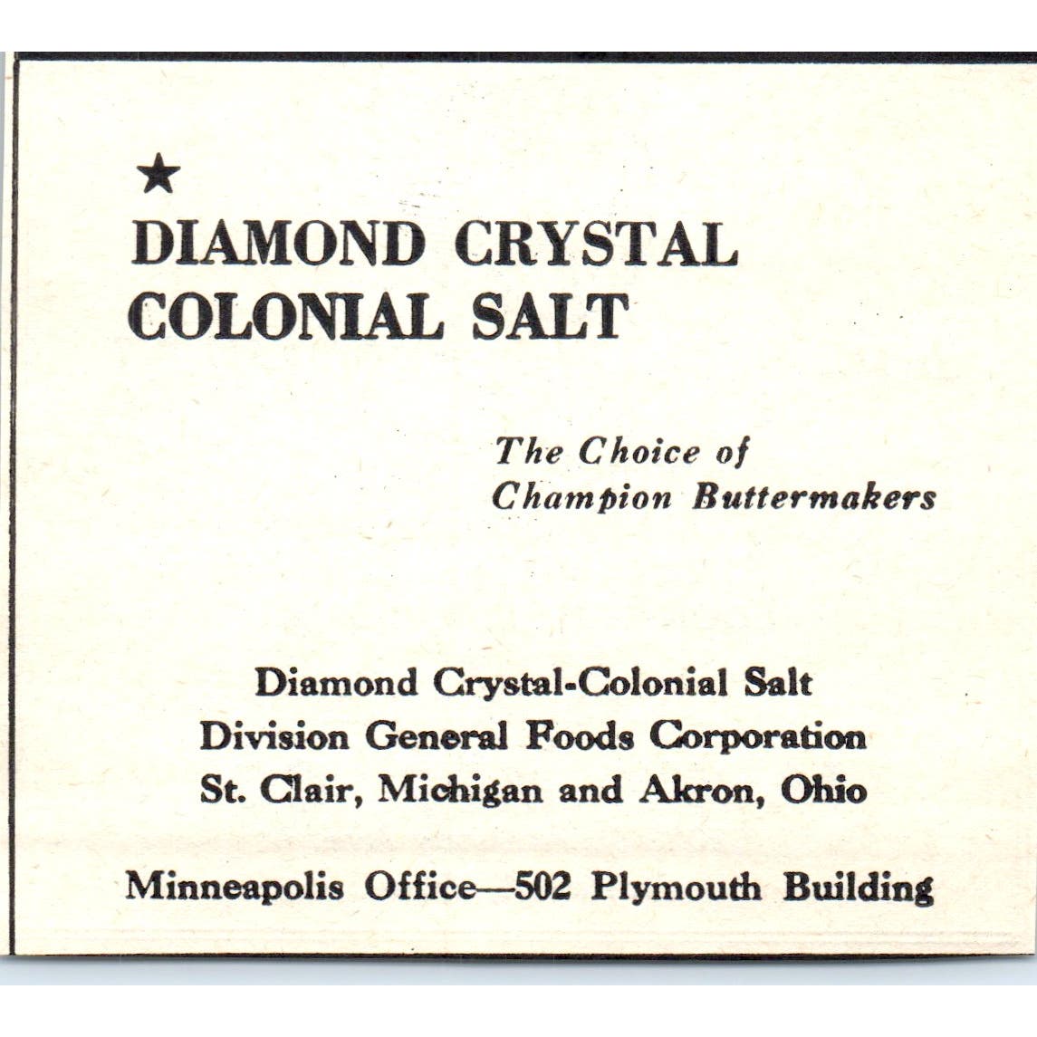 Jacks Mfg Co St Paul Diamond Crystal Colonial Salt General Foods 1953 Ad AE9-DC2