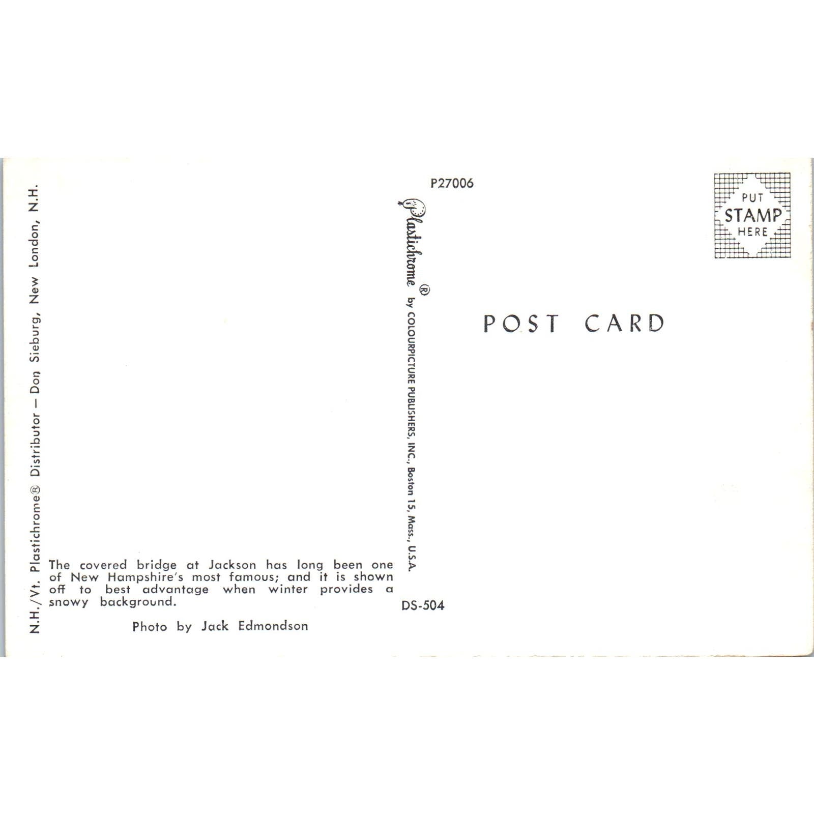 Jackson Bridge New Hampshire Covered Bridge Postcard PB12