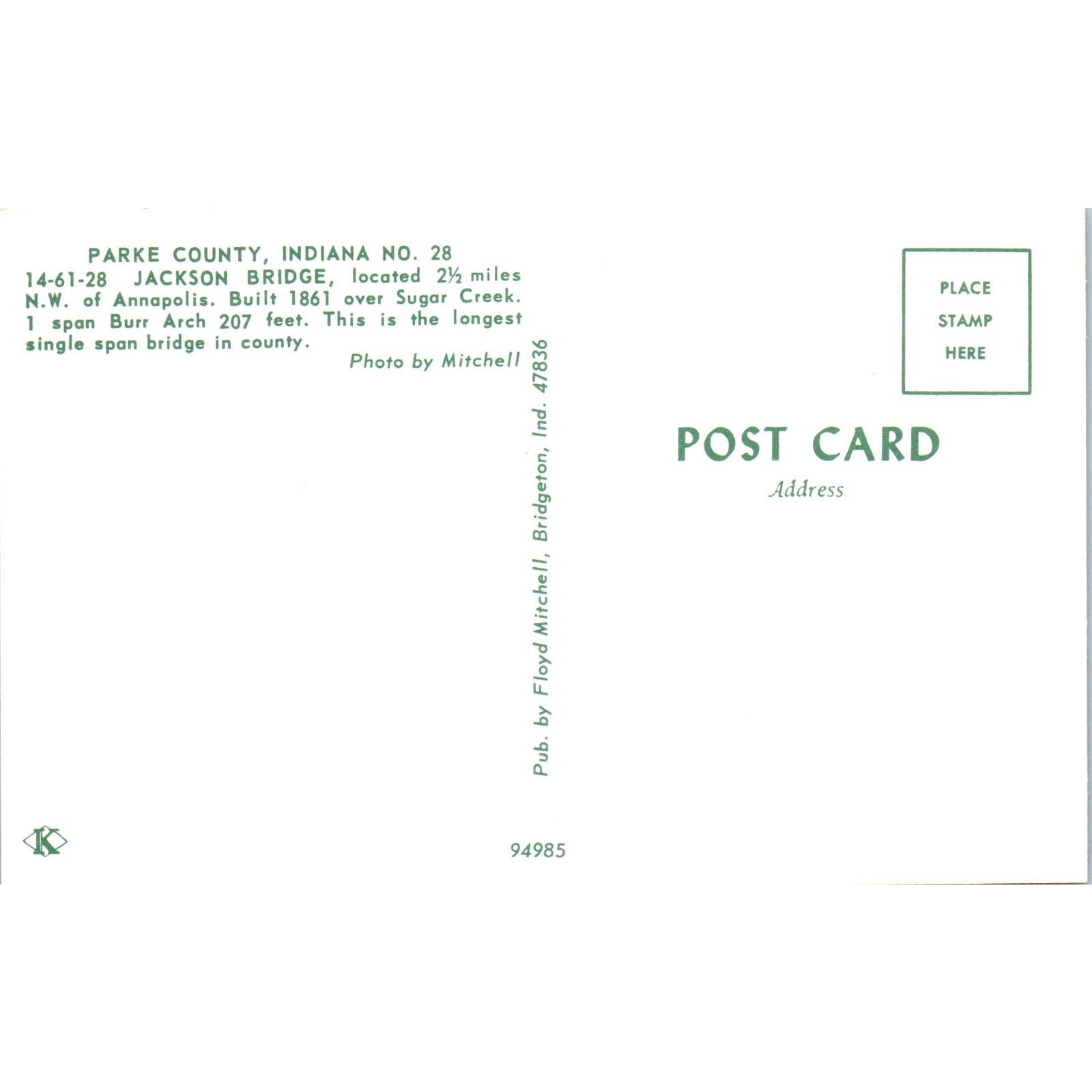 Jackson Bridge Parke County IN No 28 Vintage Covered Bridge Postcard PD1