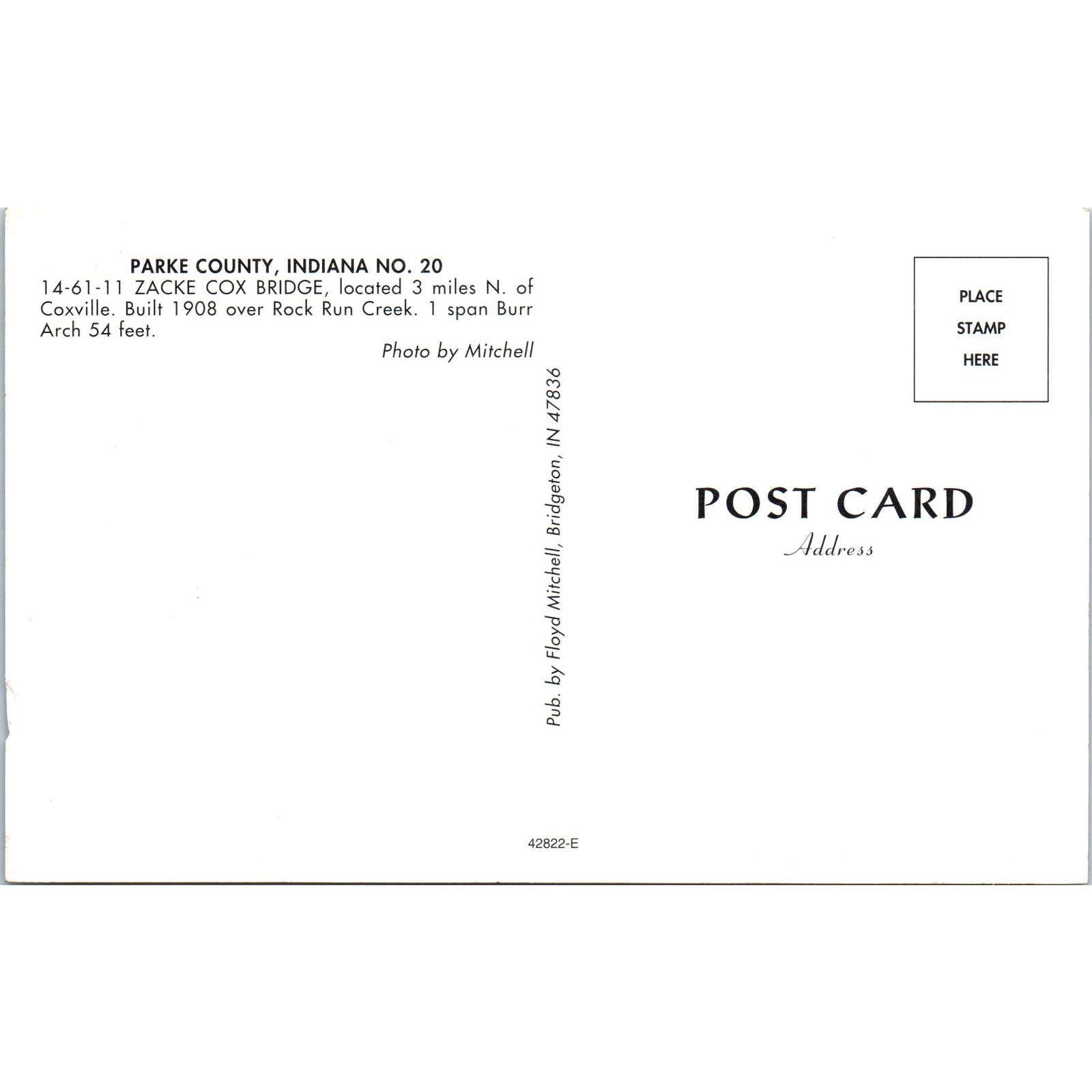 Zacke Cox Bridge Parke County 20 IN Vintage Covered Bridge Postcard PC14