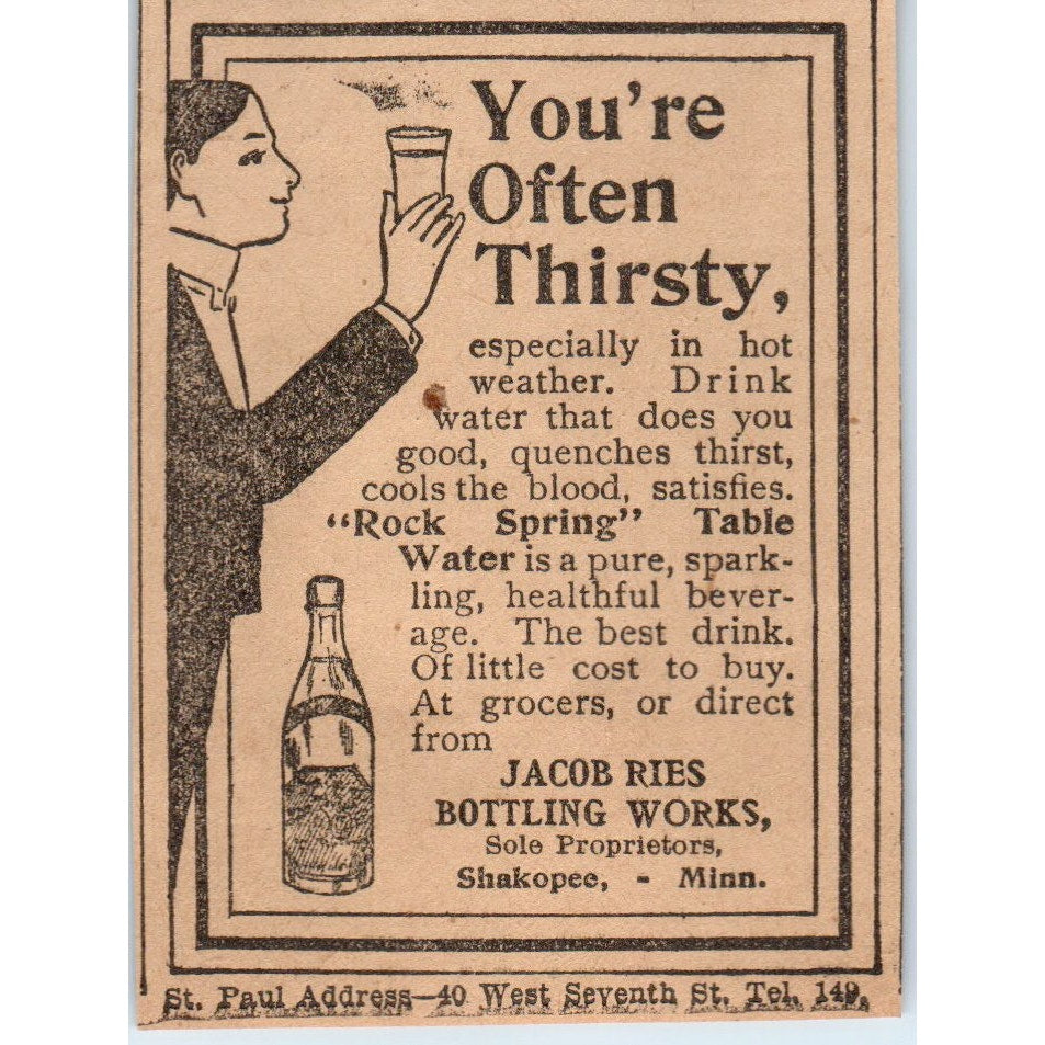 Jacob Bottling Works Table Water Shakopee MN St. Paul 1898 Newspaper Ad AF2-Q1