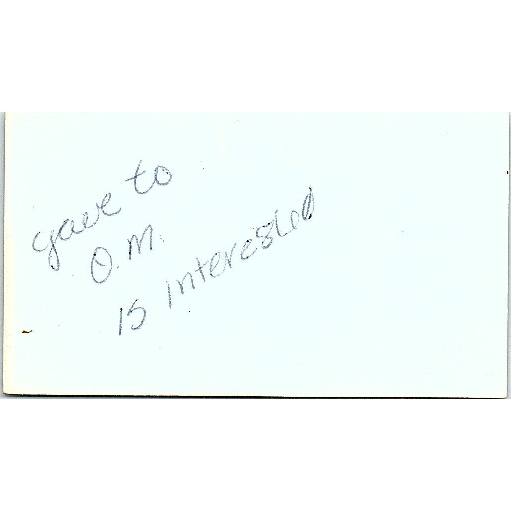 Original standard size business card. There may be some light staining, writing, and/or other signs of wear and tear. See pics for condition.
