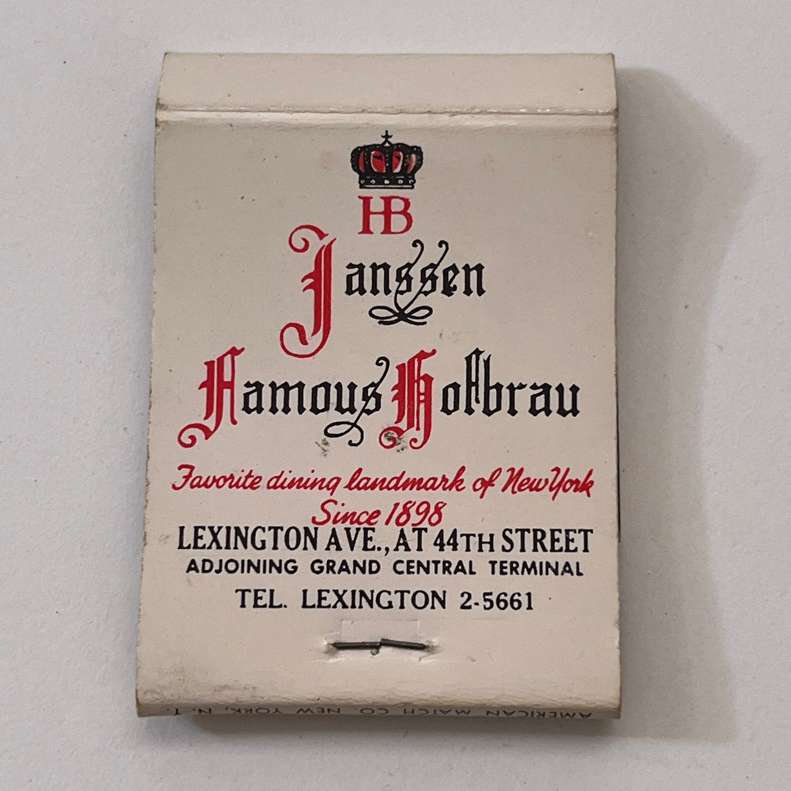 Janssen's Famous Hofbrau Grand Central Terminal Matchbook Cover TB6-MB1-5