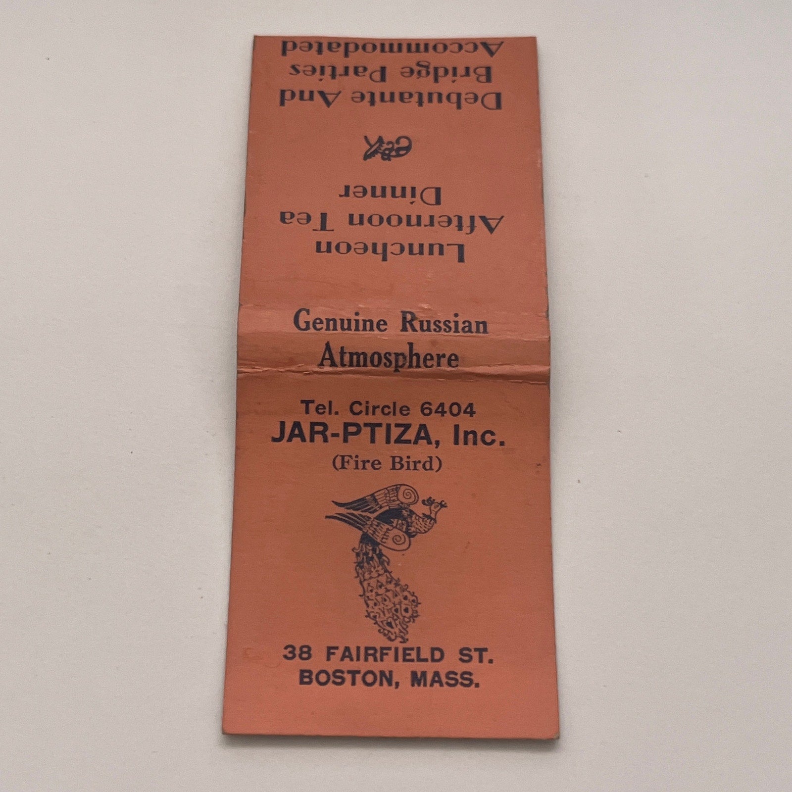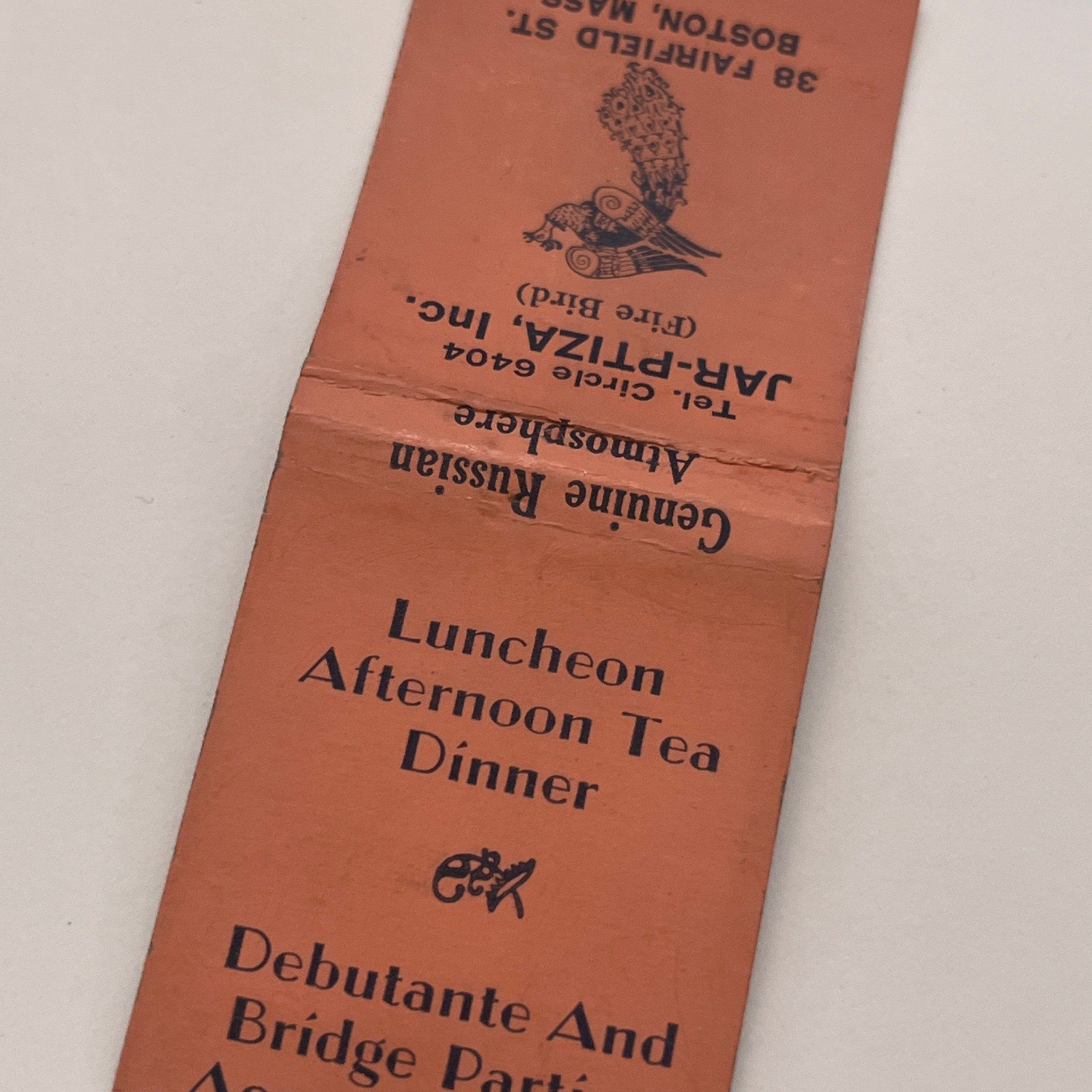 Jar-Ptiza Inc Restaurant Fire Bird Boston MA Vintage Matchbook Cover TB8-MB2-3