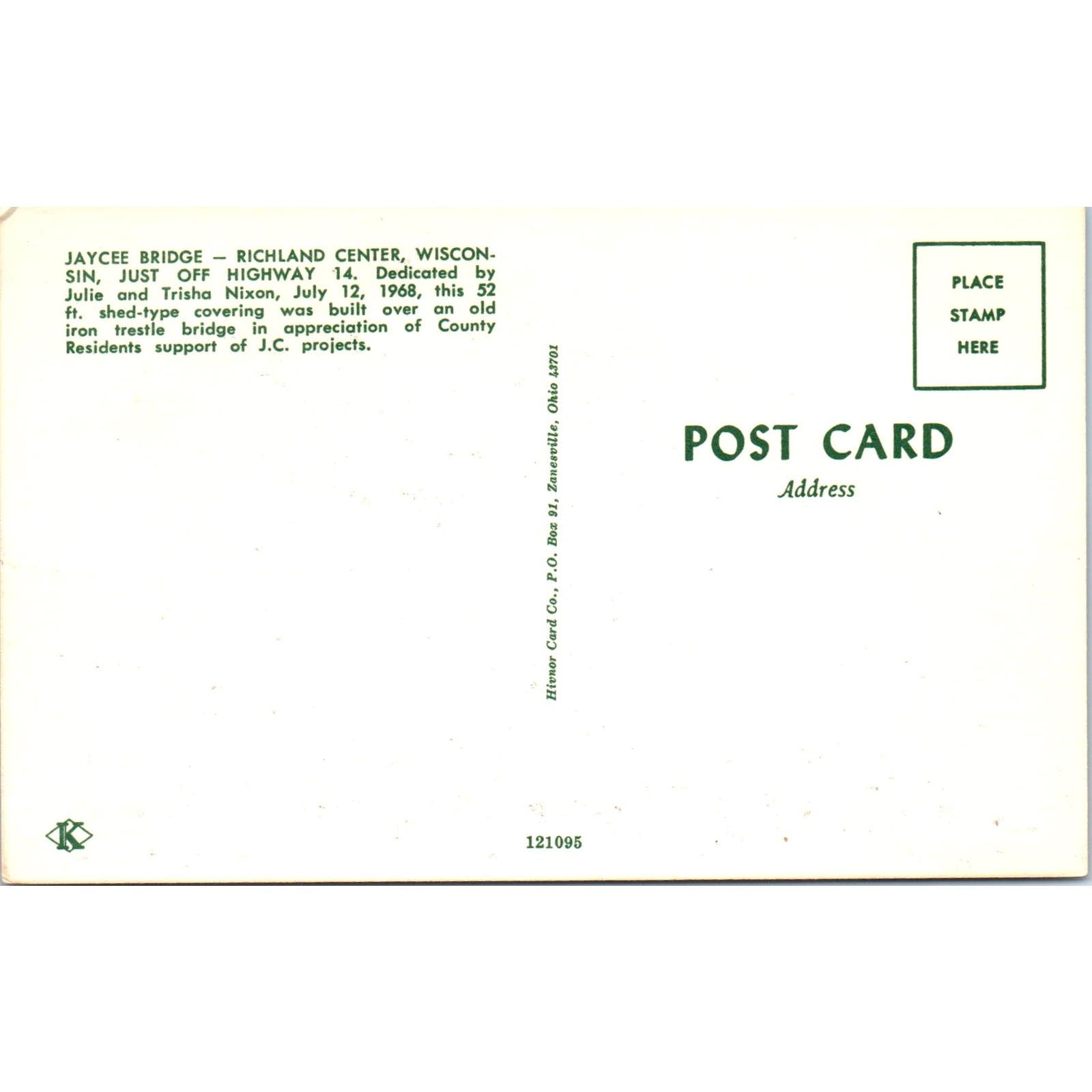 Jaycee Bridge Richland Center WI Vintage Covered Bridge Postcard PD1