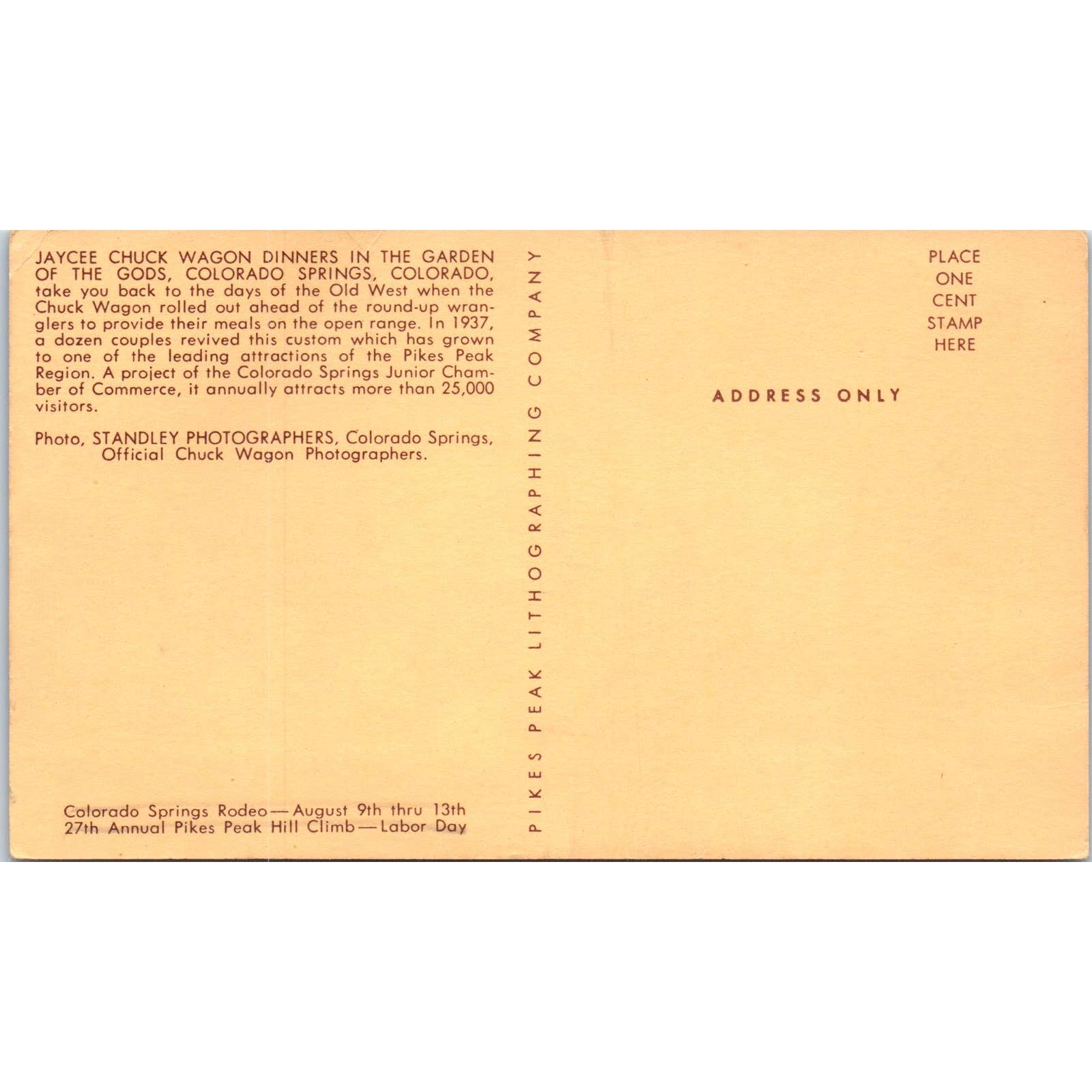 Jaycee Chuck Wagon Dinner Garden of the Gods Colorado Springs CO Original Postcard TK1-28