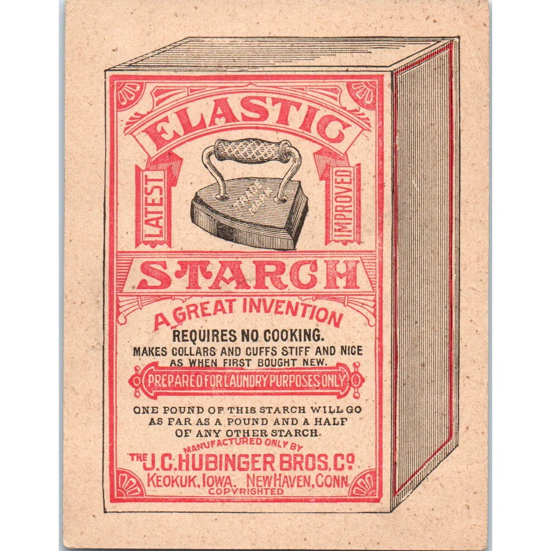 JC Hubinger Bros Keokuk IA New Haven CT Starch c1880 Victorian Trade Card AE2