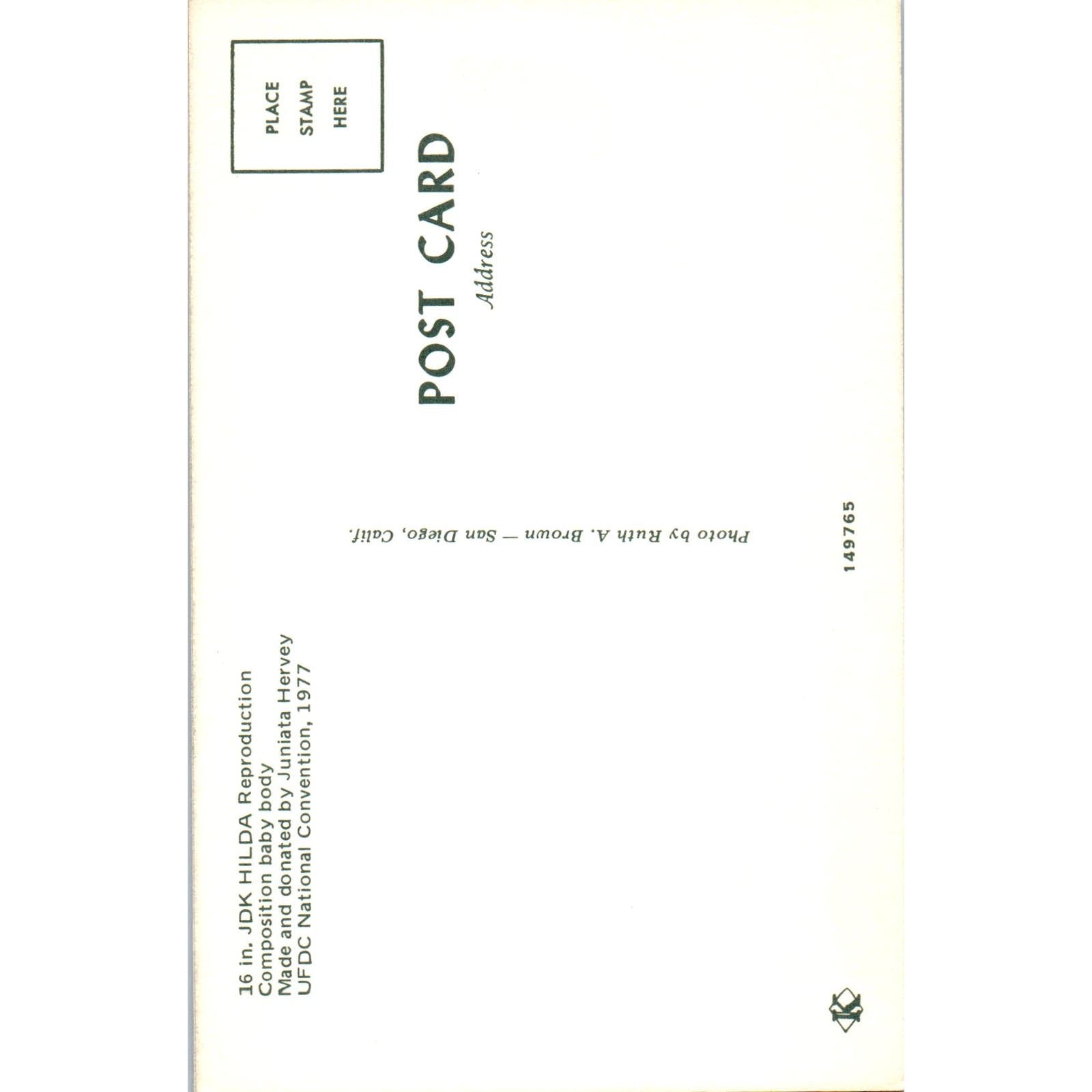 JDK Hilda Reproduction Doll UFDC Convention 1977 Original Postcard PB8