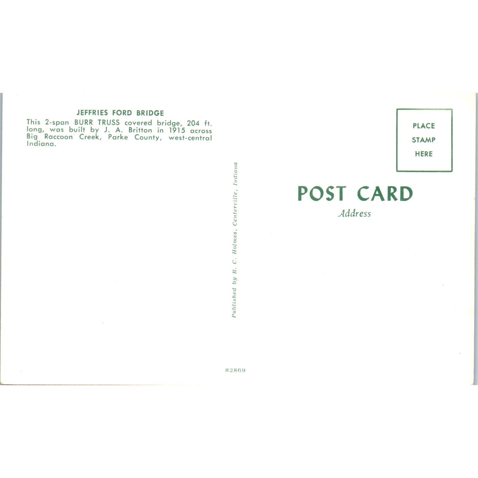 Jeffries Ford Bridge Burr Truss Parke County IN Vintage Covered Bridge Postcard PD3