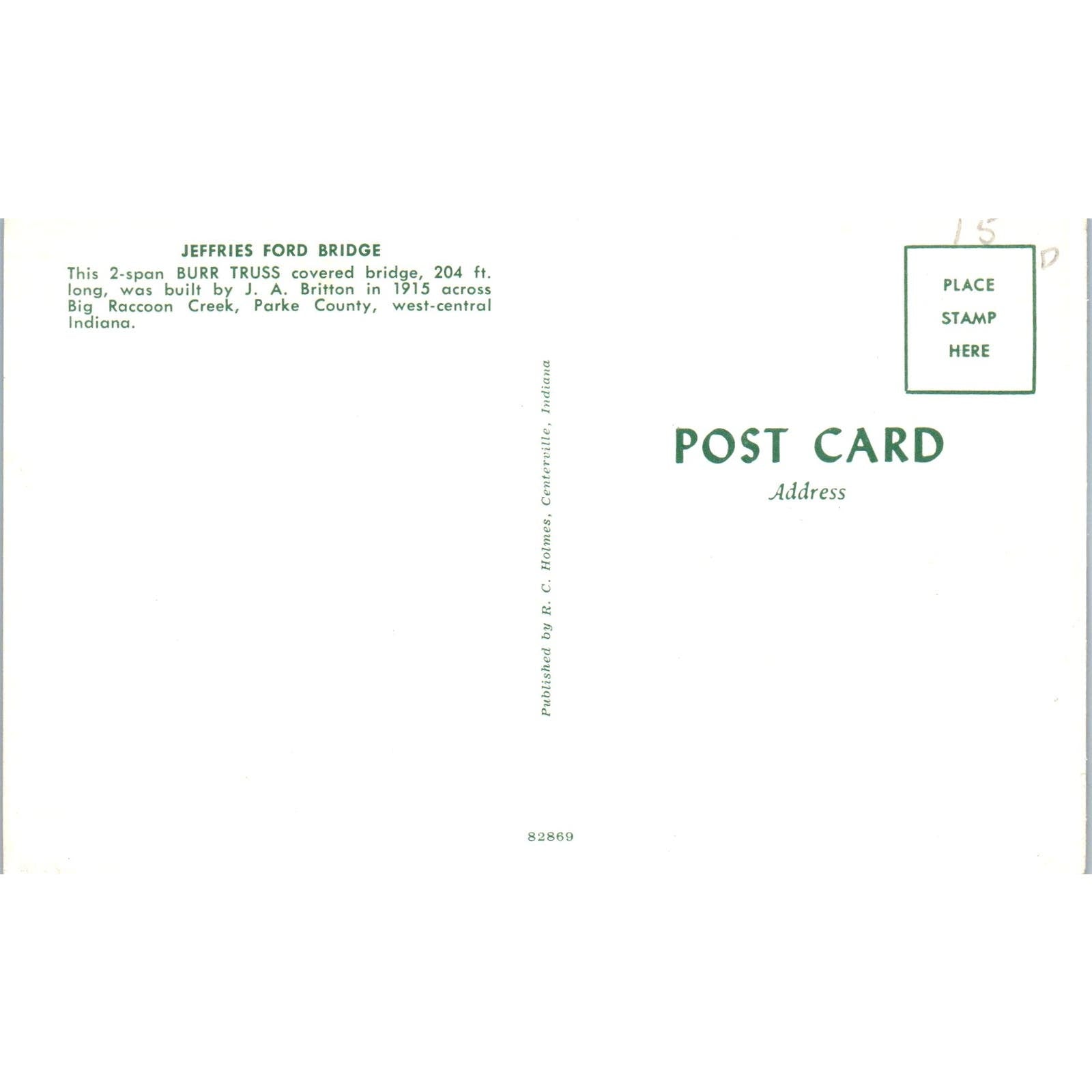 Jeffries Ford Bridge Parke County Big Raccoon Creek IN Covered Bridge Postcard PC8