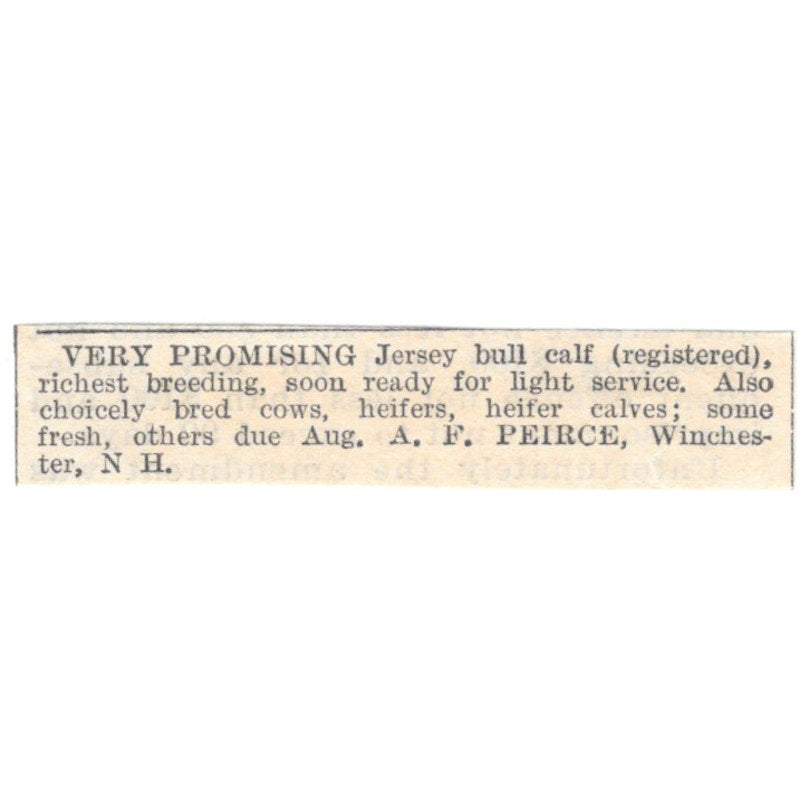Jersey Bull Calf A.F. Peirce Winchester NH 1905 Magazine Ad AF1-NES2