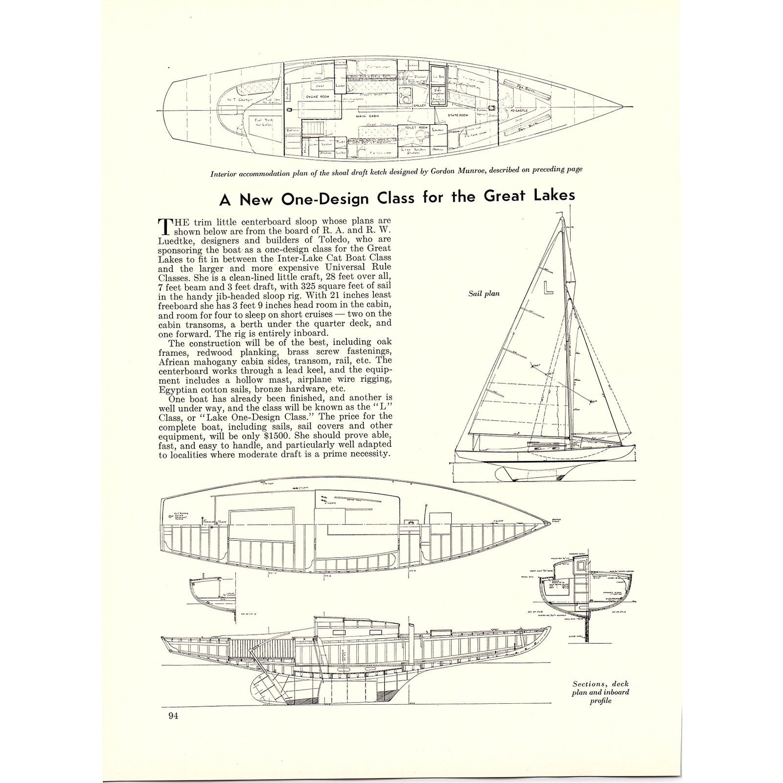 Jib-Headed Cruising Ketch of Moderate Draft, One-Design Class for the Great Lakes 1932 Article V1-4