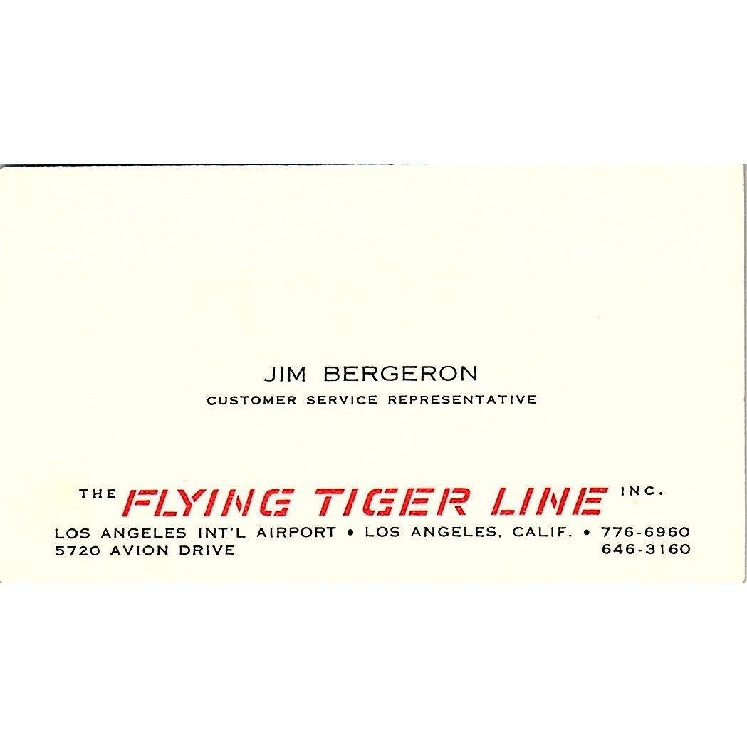Jim Bergeron The Flying Tiger Line Los Angeles CA Vintage Business Card SE3-B16