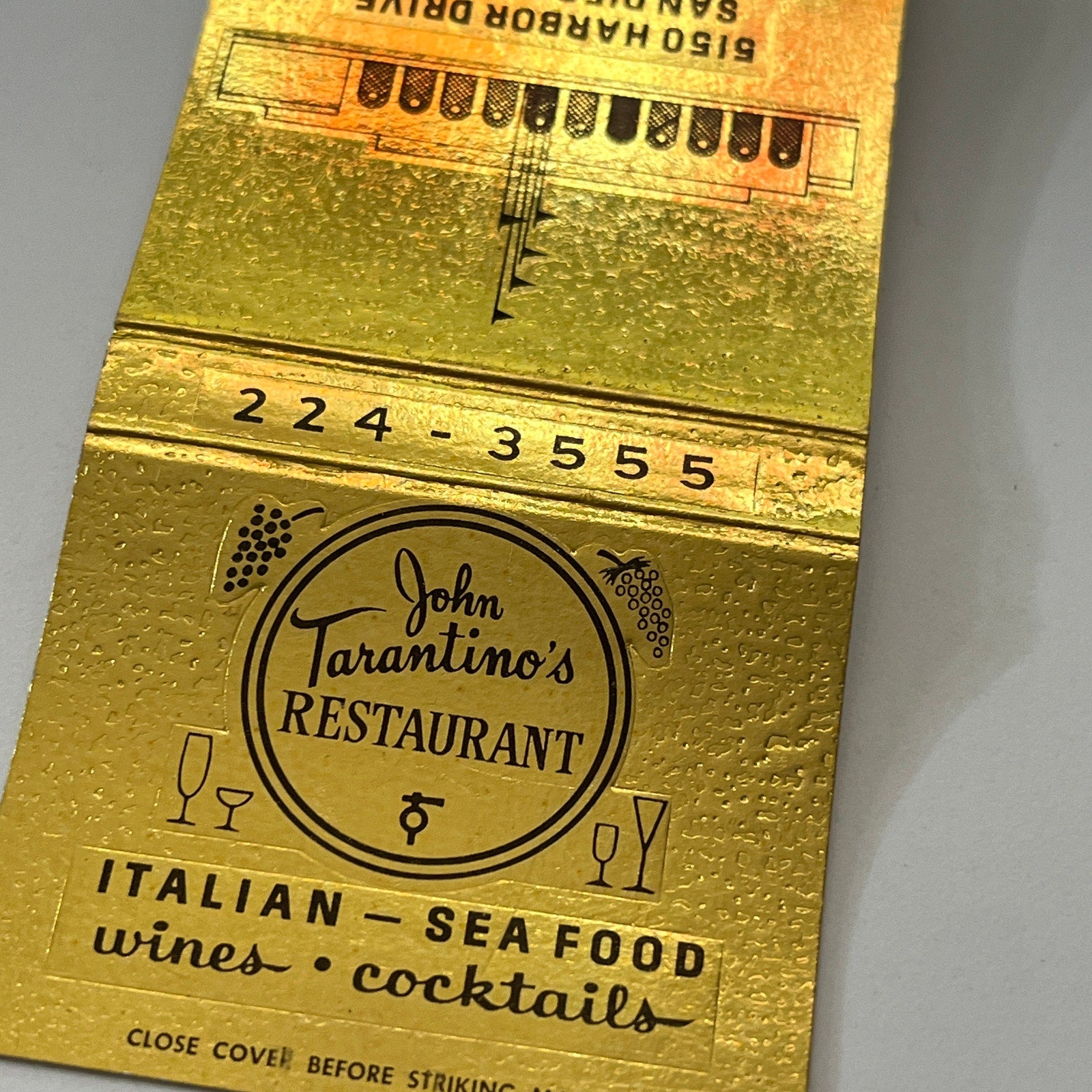 John Tarantino's Restaurant San Diego CA Vintage Matchbook Cover TB6-MB1-8