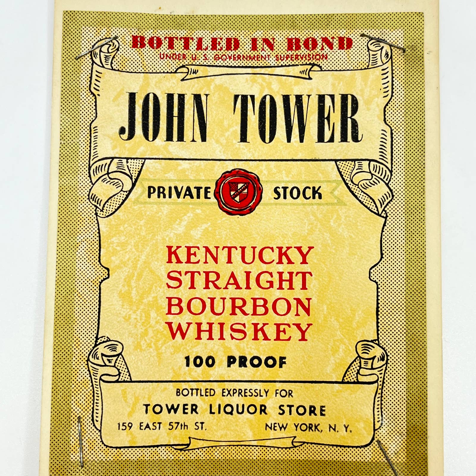 John Tower Bourbon Whiskey Label Tower Liquor Store 159 E. 57th St. New York NY