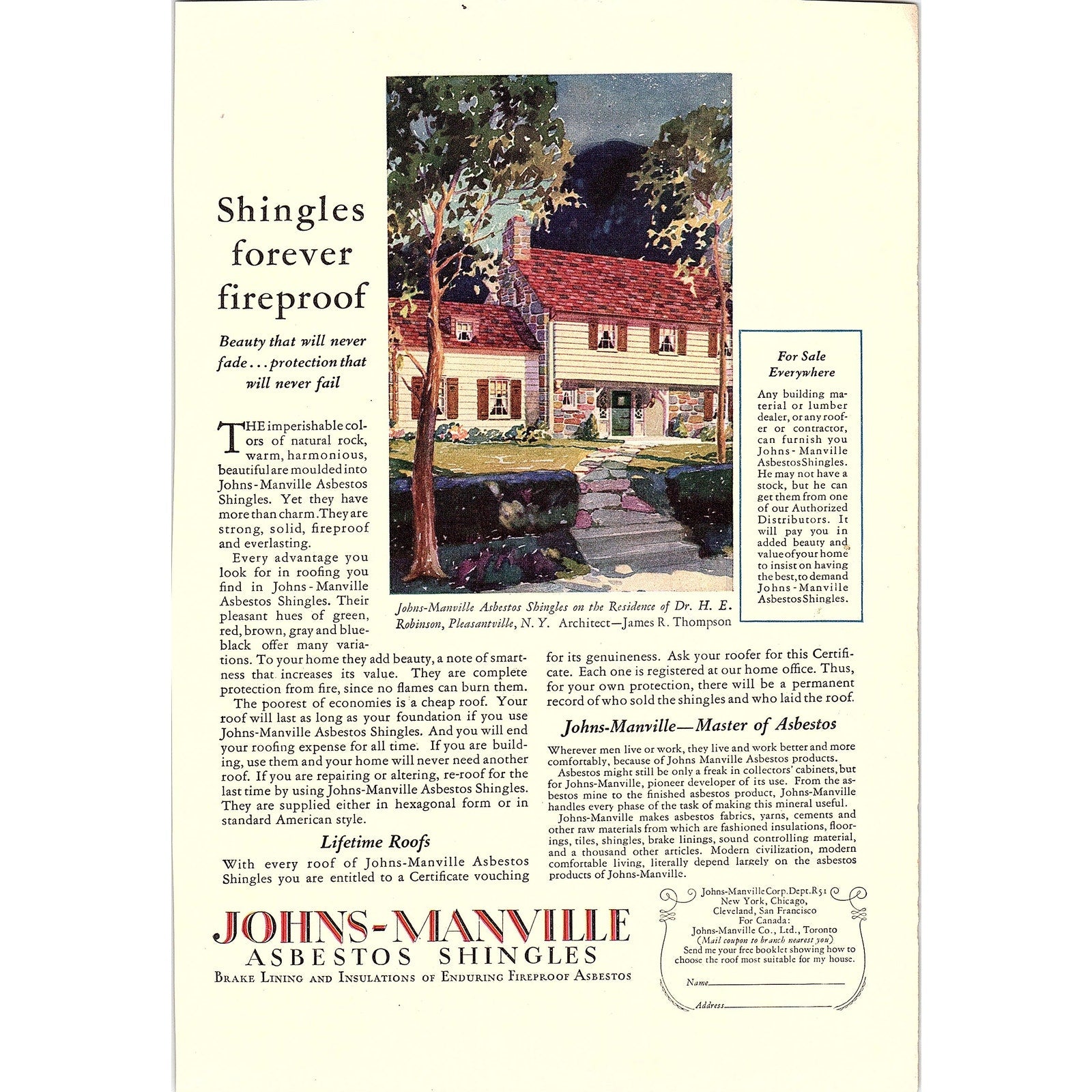 Johns-Manville Asbestos Shingles - Residence of Dr. H.E. Robinson Pleasantville NY 1926 Ad AG3-7