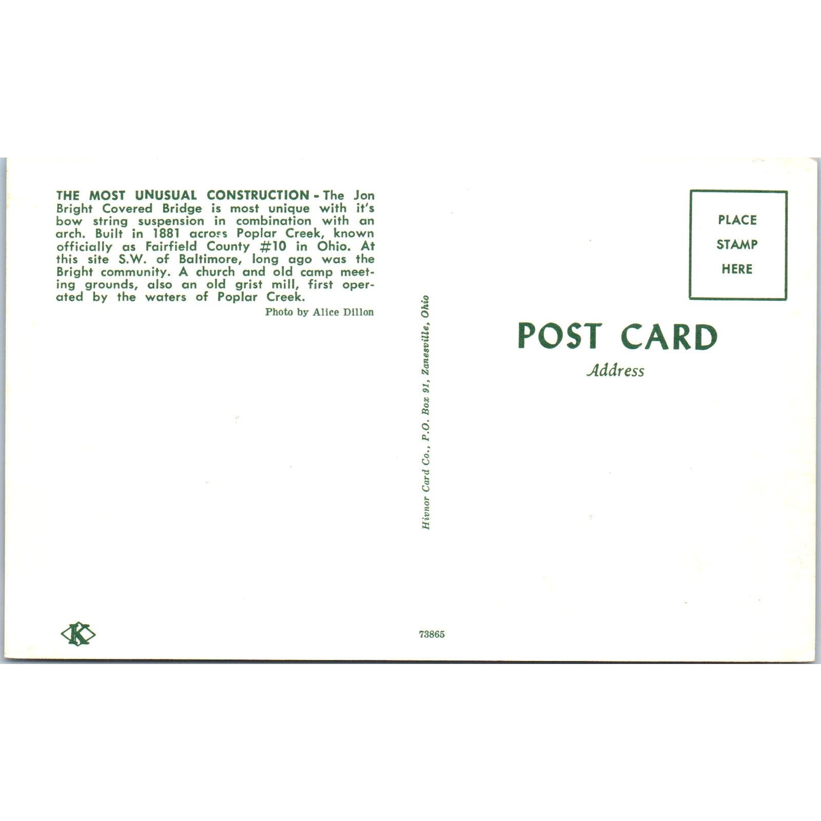 Jon Bright Bridge Fairfield County 10 OH Vintage Covered Bridge Postcard PC12