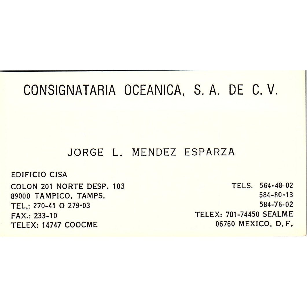 Jorge L Mendez Esparza Consignataria Oceanica Tampico Tam Vintage Business Card SC9-B6