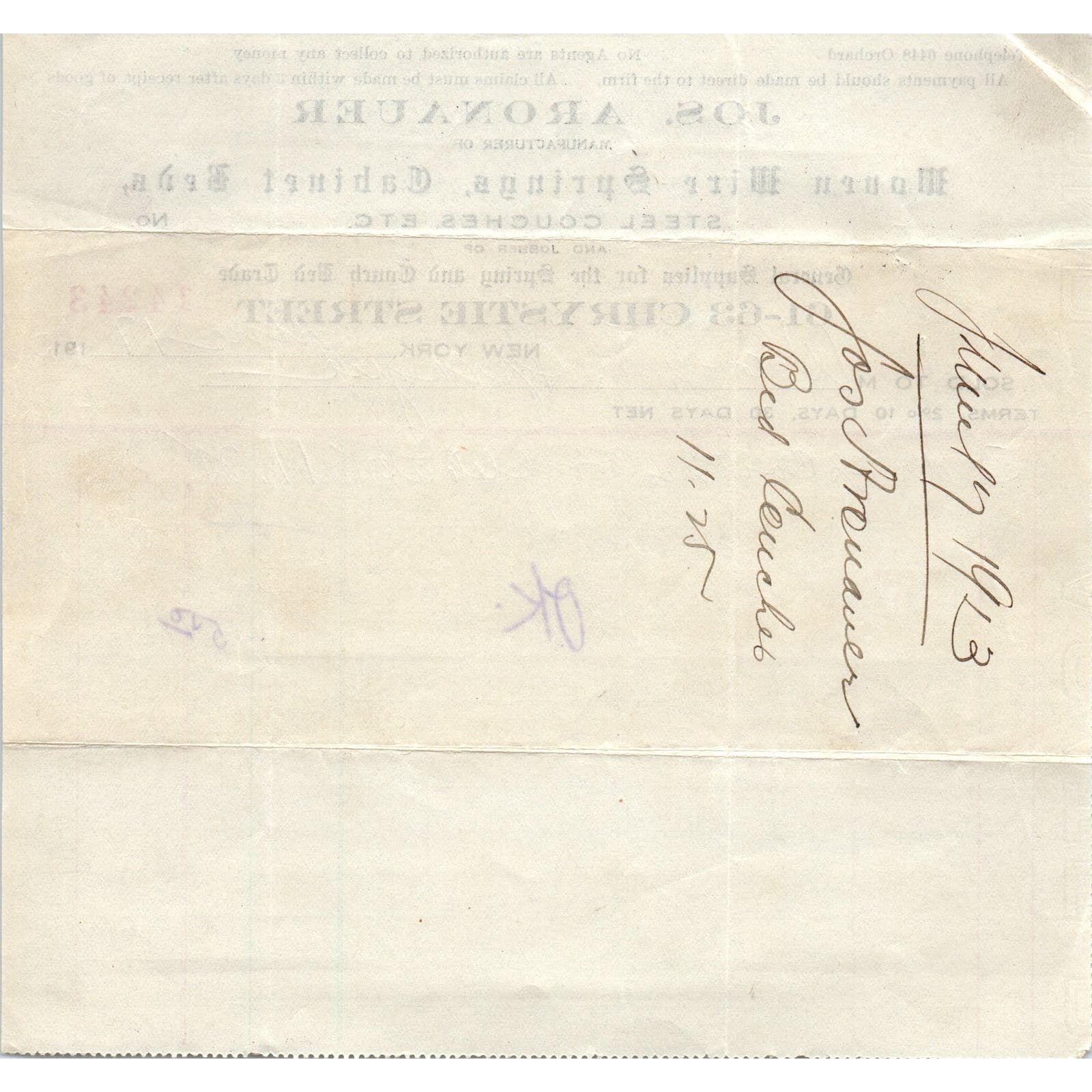 Jos Aronauer Woven Wire Springs NY 1913 Original Billhead Letterhead Receipt D8-LL