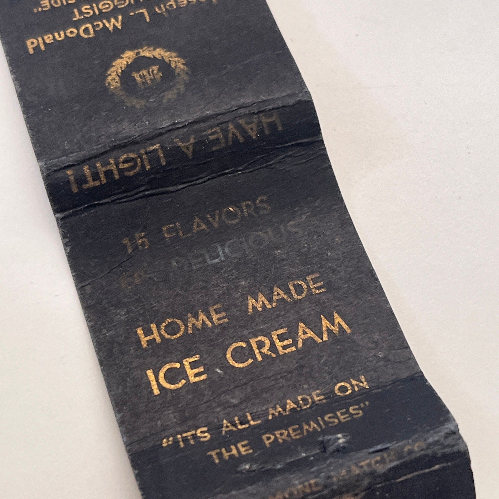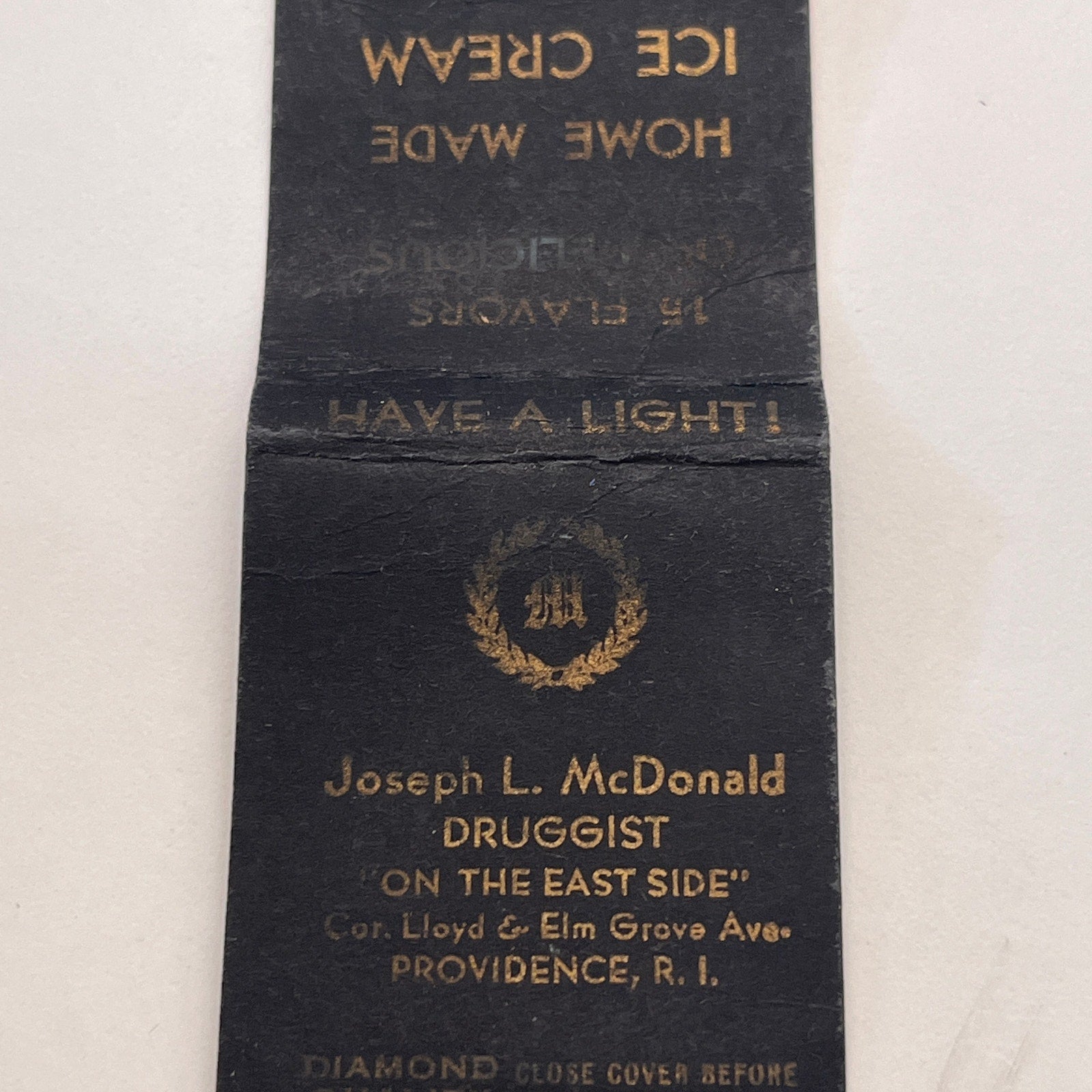 Joseph L McDonald Druggist Providence RI Vintage Matchbook Cover TB8-MB-15