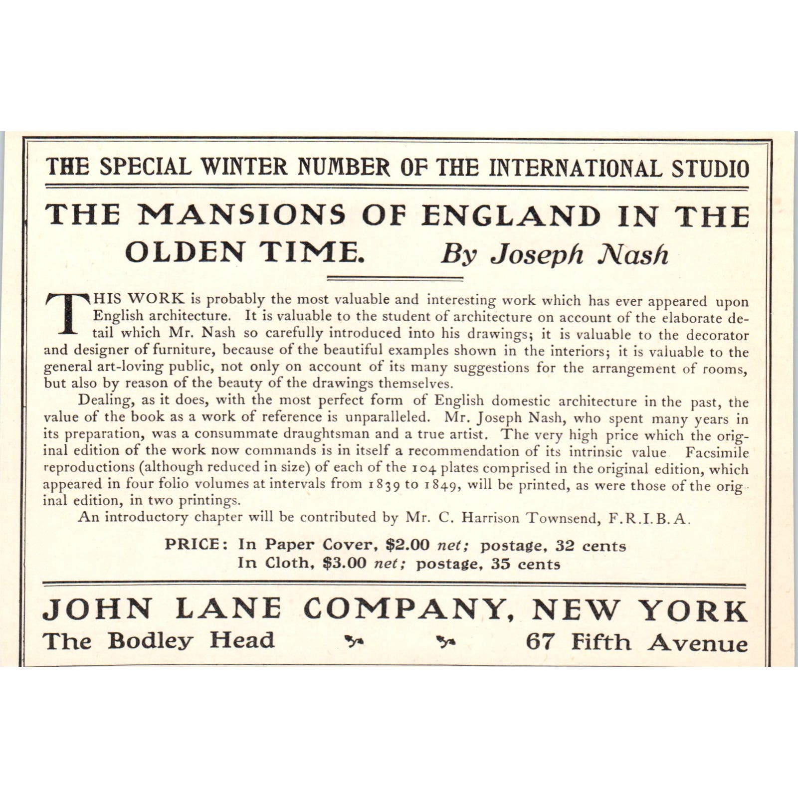 Joseph Nash Mansions of England Book Ad John Lane c1905 Victorian Ad AE9-MA3