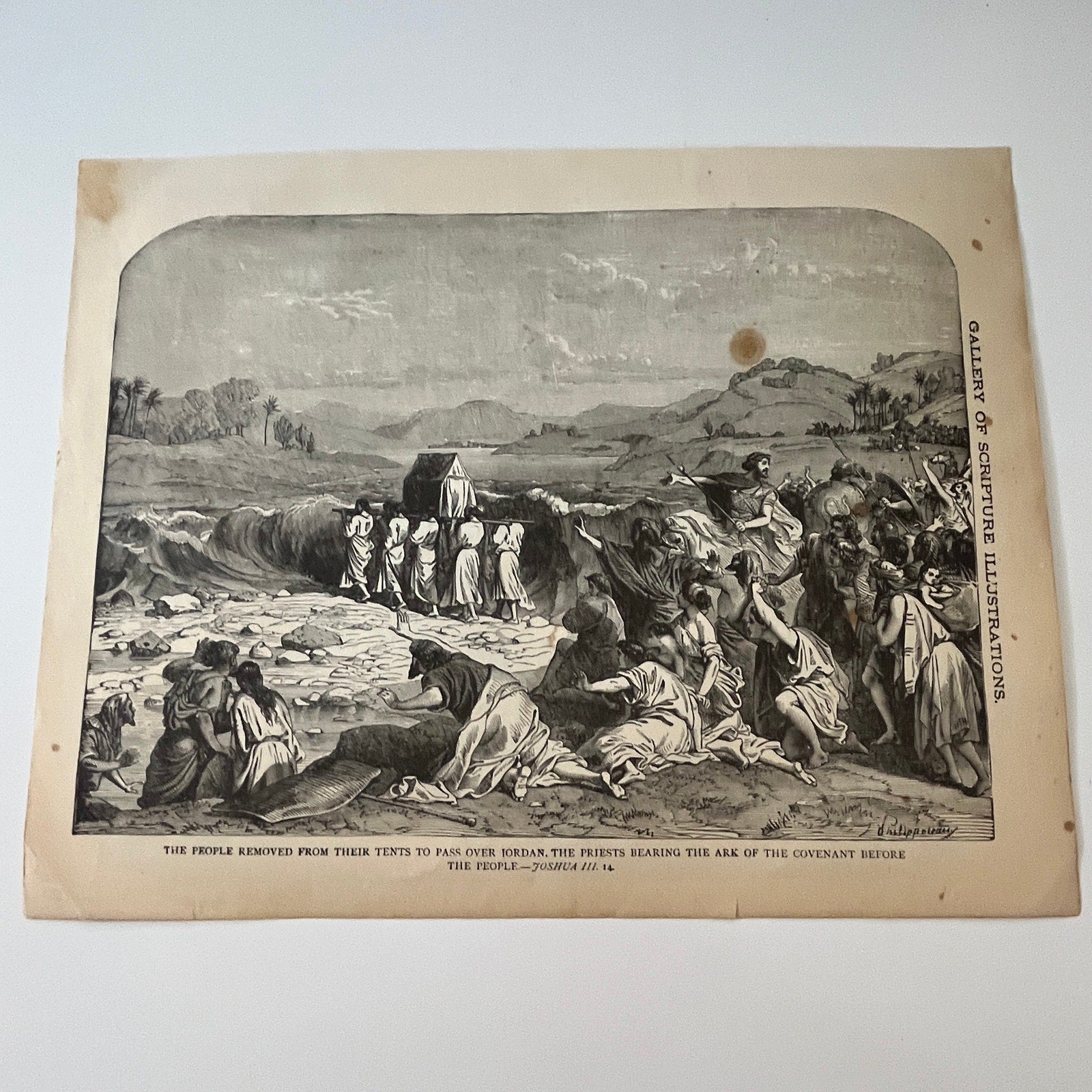 Joshua III. 14 and VI. 20 1892 Bible Engraving SV1-6
