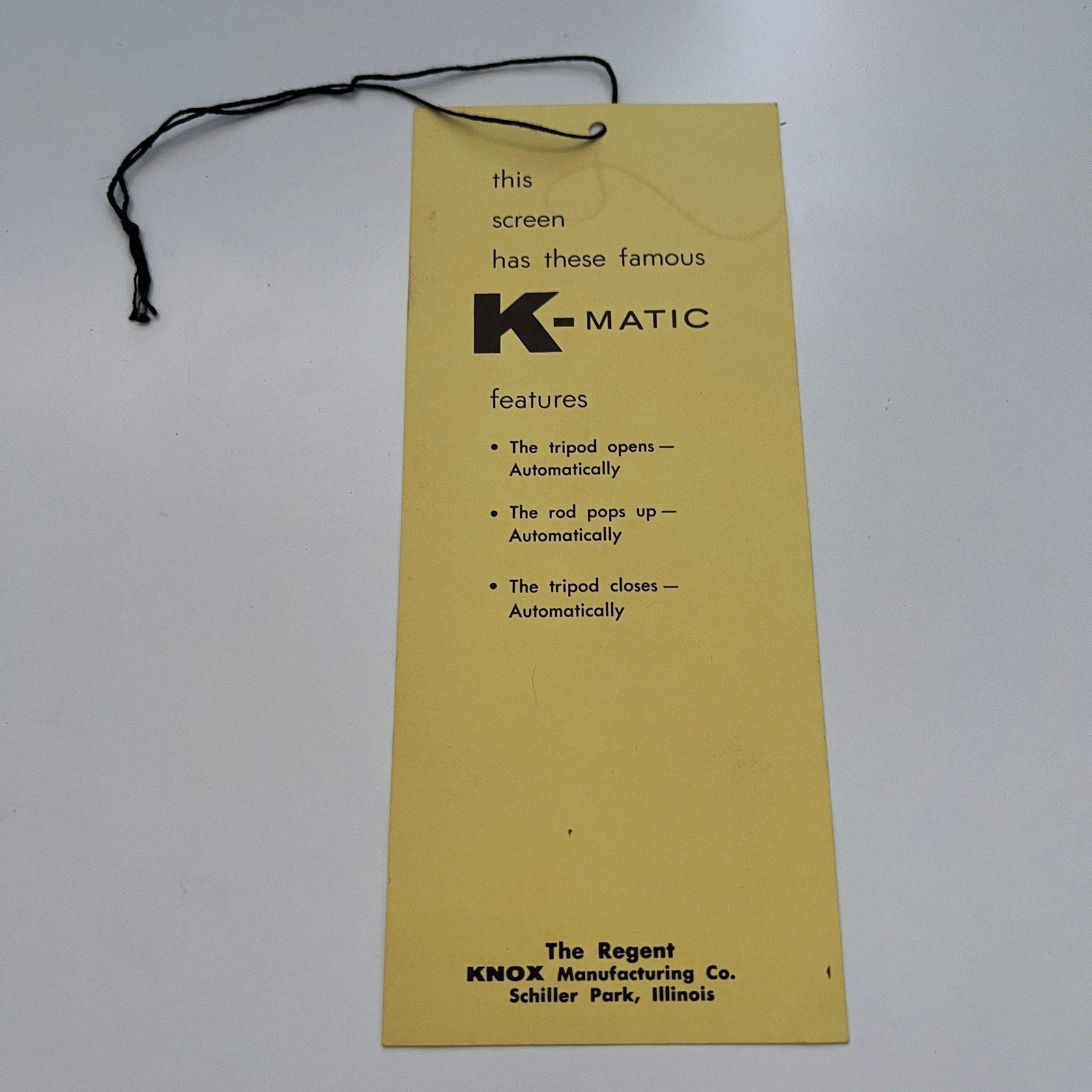K-Matic Automatic Screen Knox Mfg Co Schiller Park IL Showroom Hang Tag AG5-1