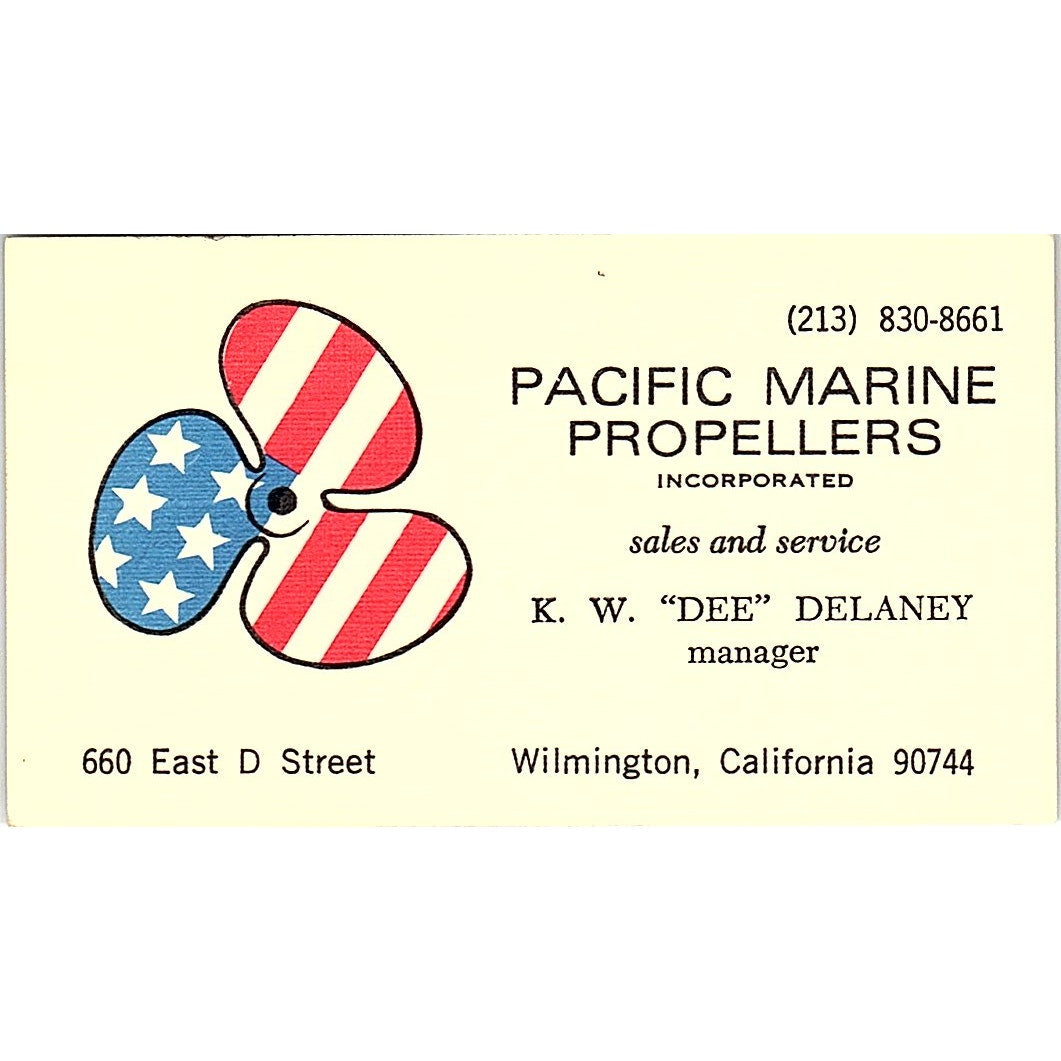 K.W. Dee Delaney Pacific Marine Propellers Wilmington CA Vintage Business Card SD9-B9