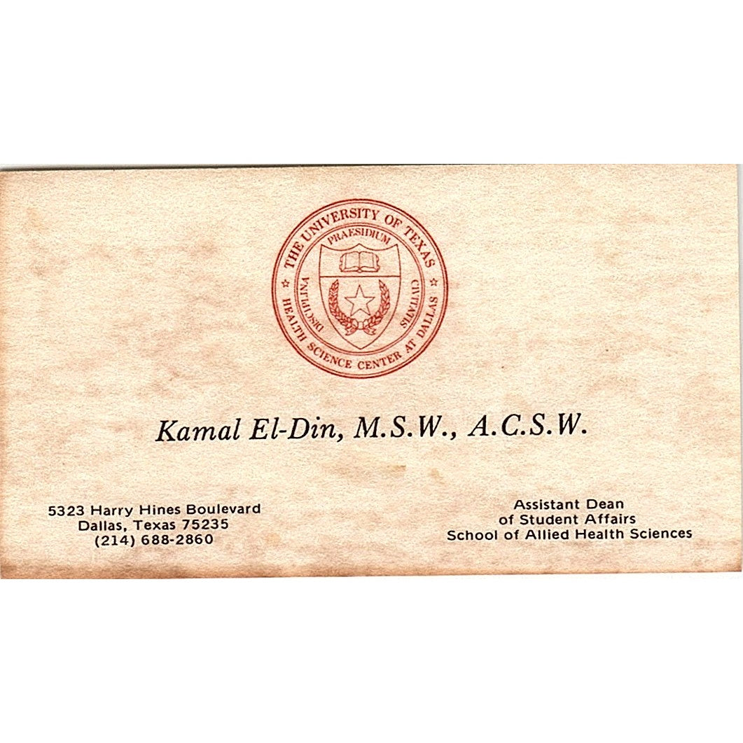 Kamal El-Din M.S.W., A.C.S.W Dallas Texas Vintage Business Card SF3-B3