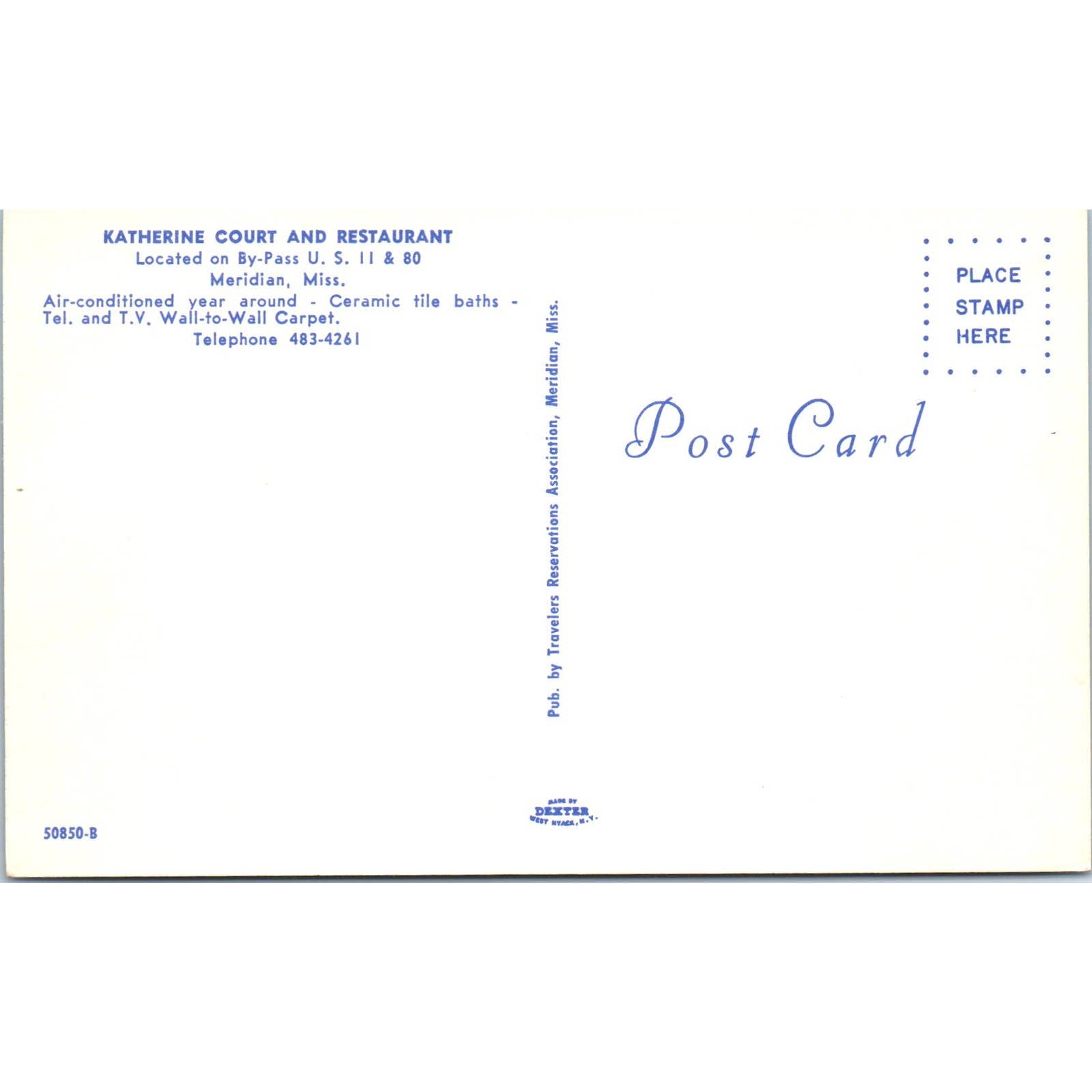 Katherine Court & Restaurant Meridian Mississippi - Original Postcard TJ9-P1
