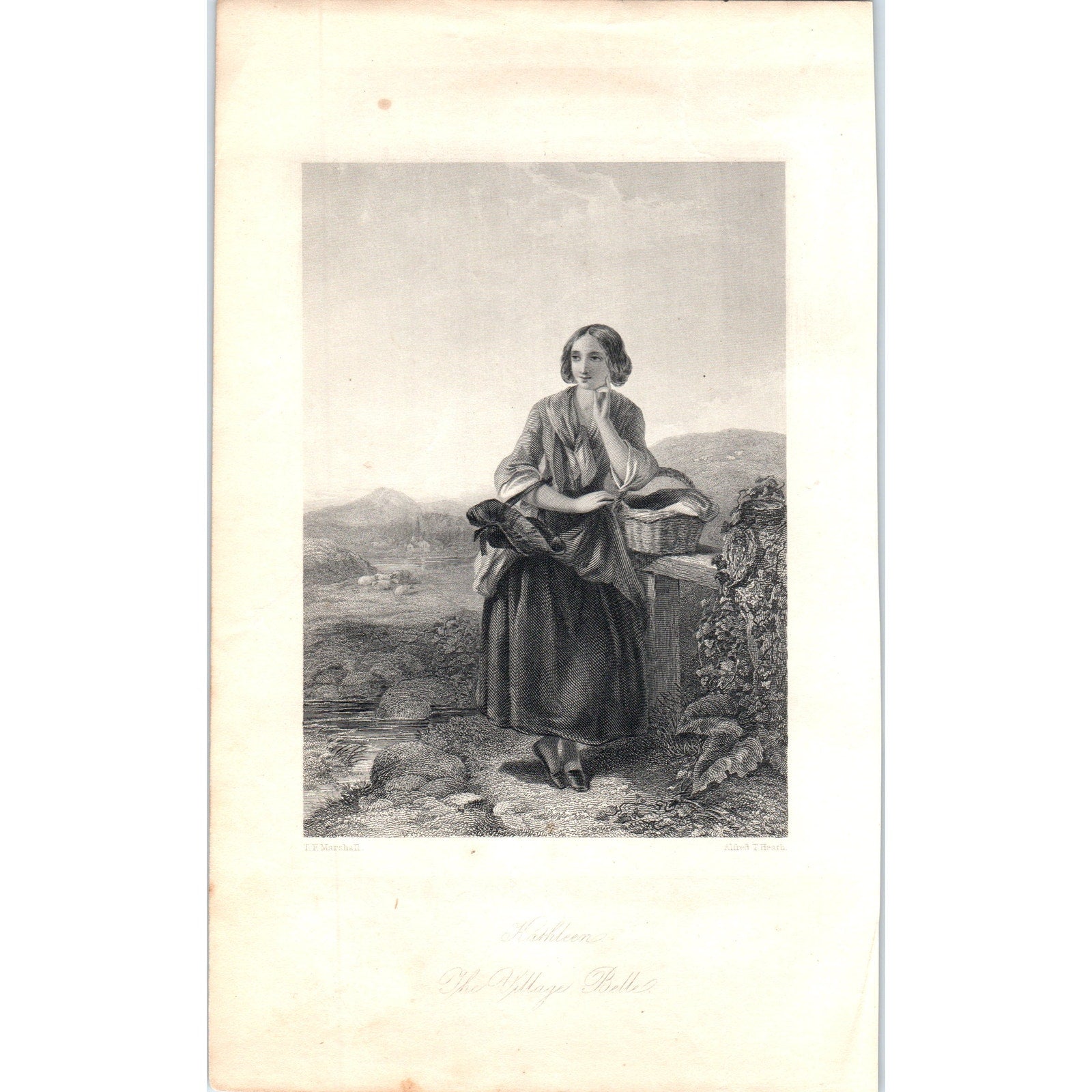 Kathleen The Village Belle 1857 Original Art Engraving D19-4
