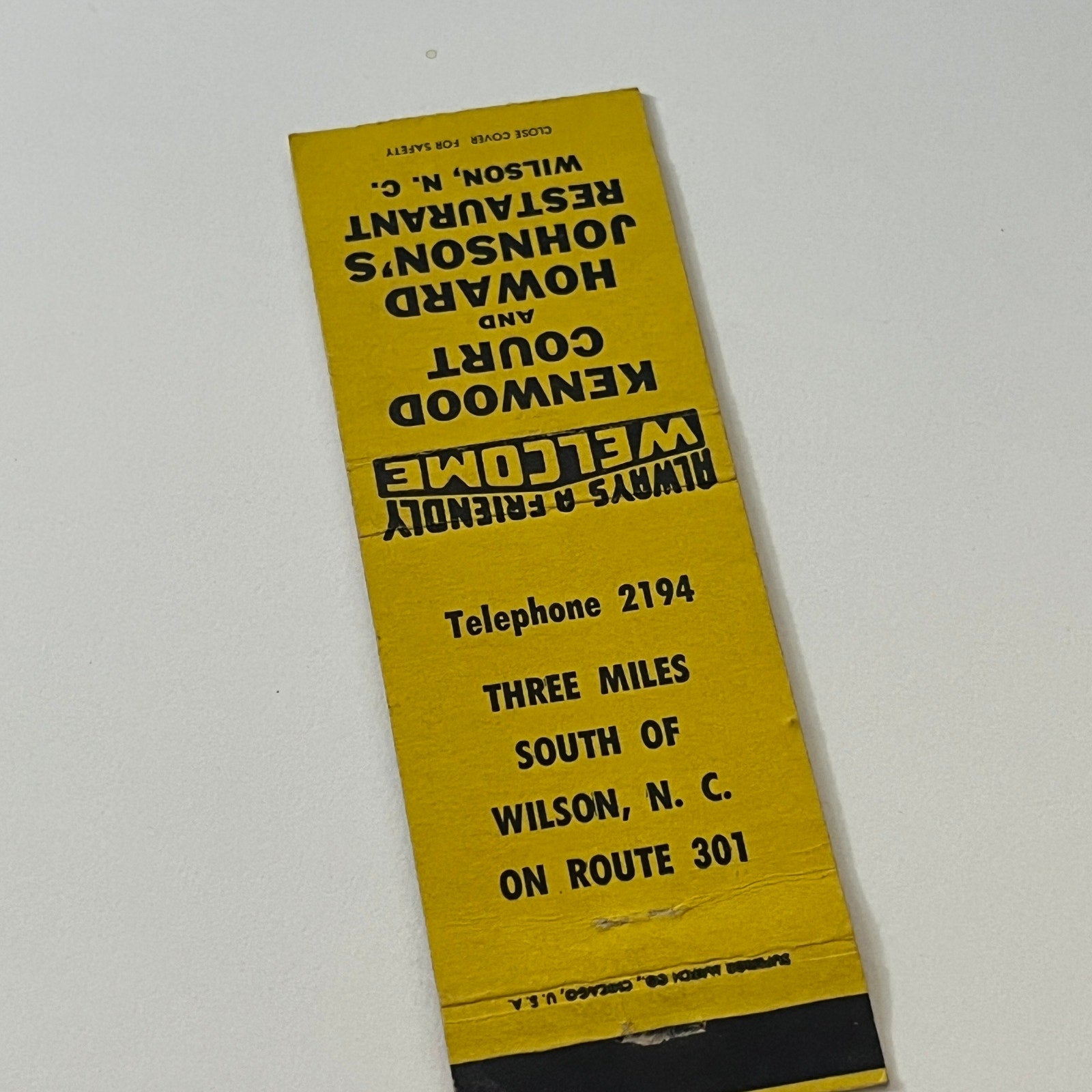 Kenwood Court and Howard Johnson's Restaurant Wilson NC Vintage Matchbook Cover TB6-MB2-6