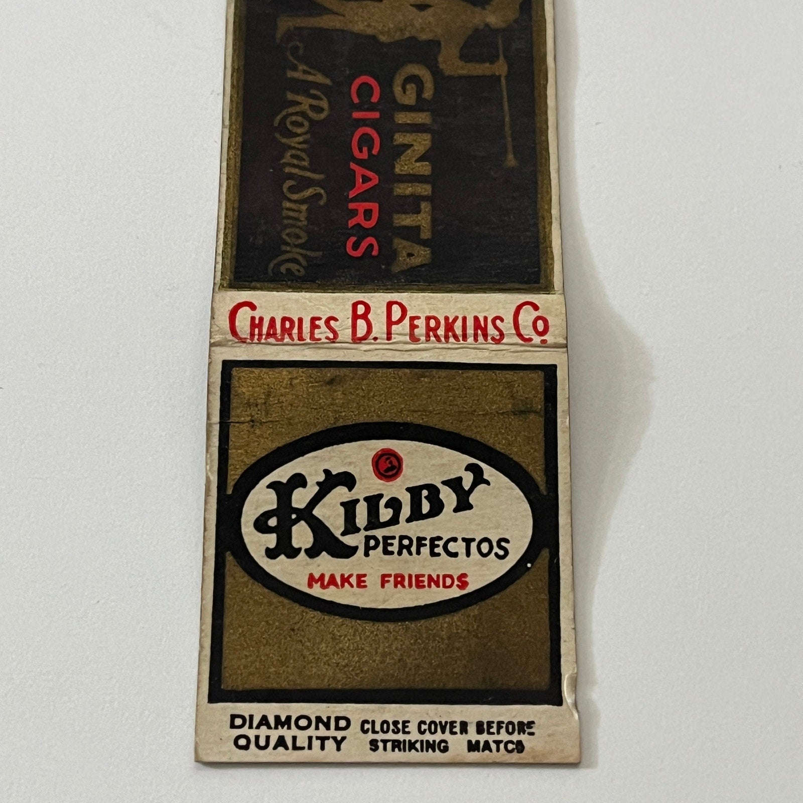 Kilby Perfecto Ginita Cigars Charles B Perkins Co Vintage Matchbook Cover TB6-MB1-13